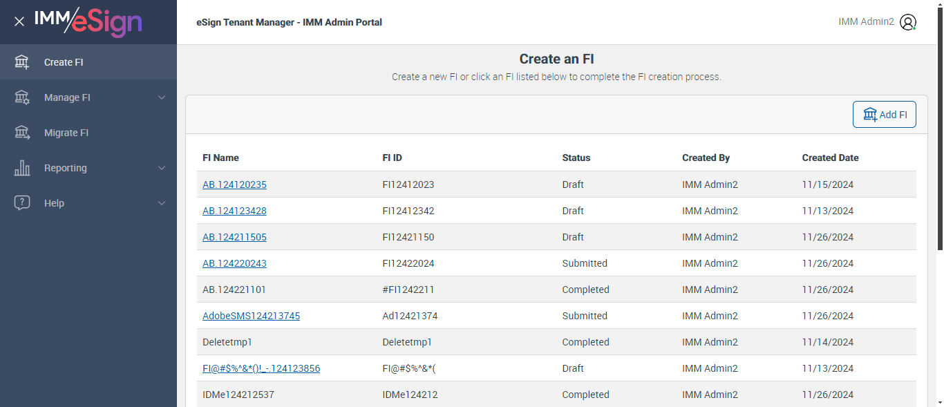 Successfully navigated to 'Create an FI' page [ScreenShot] |