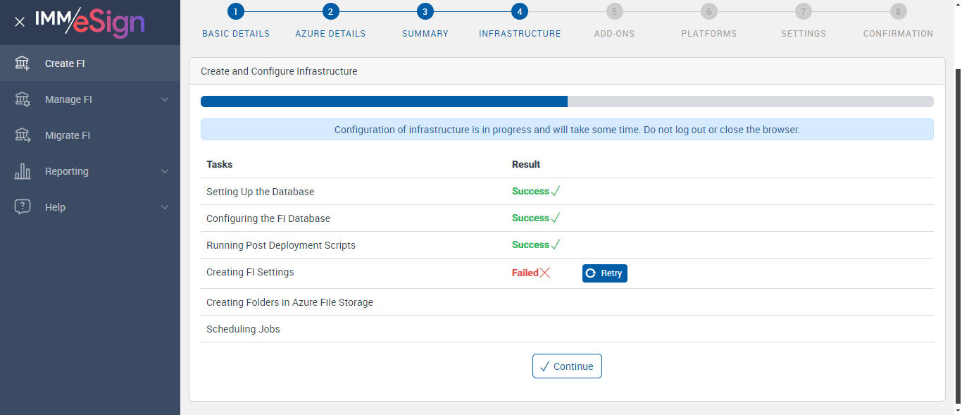 Failed to found Result for Creating FI Settings [ScreenShot] |