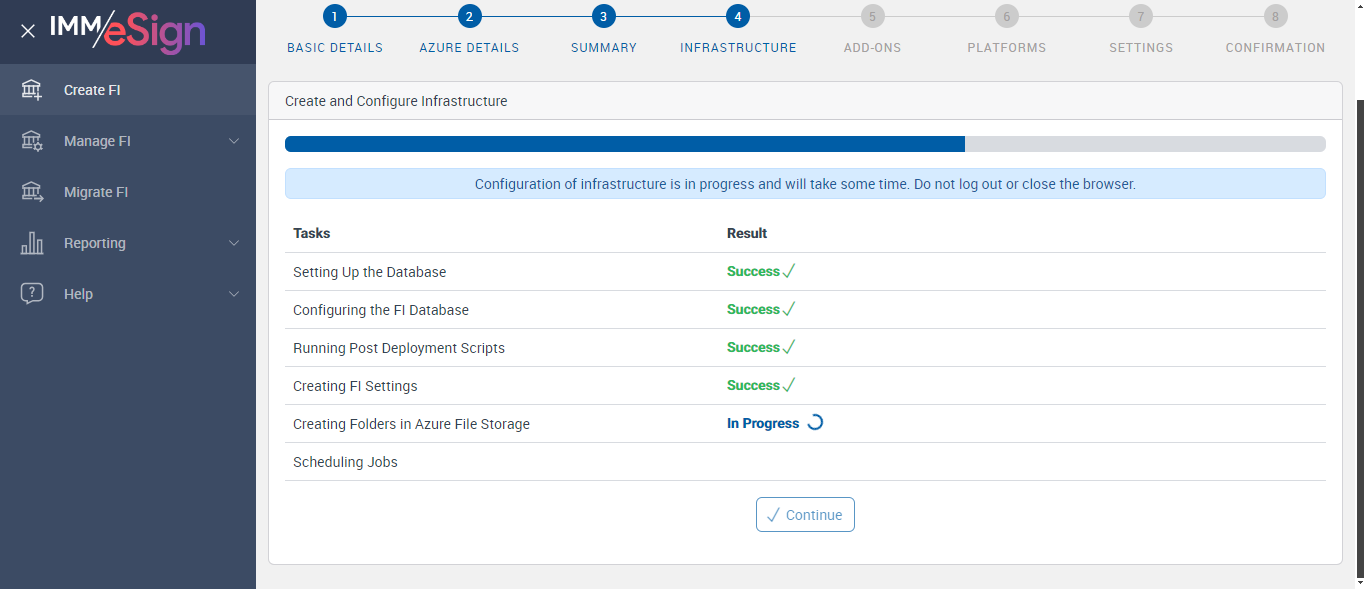 Successfully Configured 'Creating FI Settings'