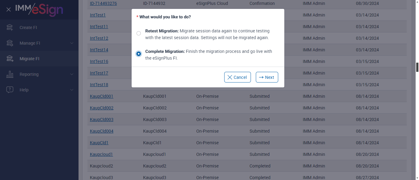 | com.imm.testscripts.MigrateFI.MigrateFi | verifyCloudToCloudFinalMigrationFiForAdobeSMSandIDMe: verify Cloud To Cloud Final Migration FI for adobeSMS and ID Me | 1725024646487 | 2770043 |