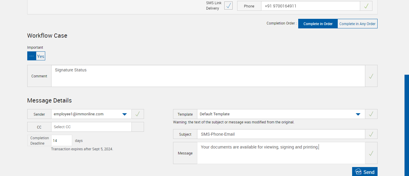 | {Tenant_User=immadmin2@immesignqa.onmicrosoft.com, Tenant_URL=https://esignnonprod.immesign.com/qa/tenantmanager/, EditFullName=, Description=verify Adobe SMS Email Authentication Signing Method RTS Session, Platform=, Message=Your documents are available for viewing, signing and printing., FileName=, ShortName=, EditShortName=, Phone_Number=+91 9700164911, Step Name=, Filepath=src/main/resources/testdata/files/DoumentsRTS/OptionalSignature.zip,src/main/resources/testdata/files/DoumentsRTS/OptionalSignature.zip,src/main/resources/testdata/files/DoumentsRTS/STUDENTS_LOAN.pdf,src/main/resources/testdata/files/DoumentsRTS/LOAN_APPLICATION.pdf, TestID=verifyAdobeSMSEmailAuthenticationSigningMethodRTSSession, FItype=Unified, IndexSource=, PartiesToView=, ReceivedFromNames=, Document Names=, Inbox=, Password=, DocumentName=LOAN_APPLICATION, Path=, Tenant_Password=iMM@2022, Comments=Signature Status,Signing the document,Completed Sign,Archive Documents, Email_Id=sunitha.pattem@kinective.io, Index_Field_Name=, Workflow=, Sender_Email_Id=employee1@immonline.com, FI_ID=autotestfi, Vendor=, From=, AttachmentTypeOption=, Subject=SMS-Phone-Email, Response=, Type=, NameDescription=, AttachmentPath=, Username=, Export_Values=, FullName=STUDENTS_LOAN, EditNameDescription=, ErrorMessage=, UserType=Admin} |
