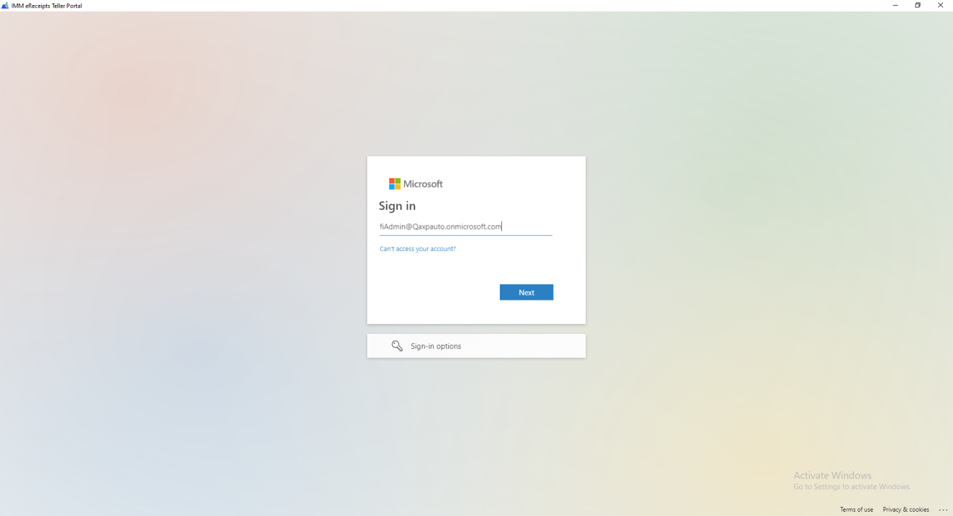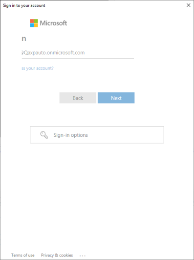 fiAdmin@Qaxpauto.onmicrosoft.com has been set successfully in the field Enter your email or phone [ScreenShot]