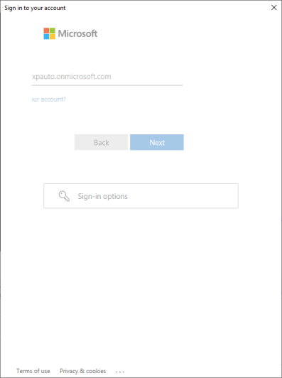fiAdmin@Qaxpauto.onmicrosoft.com has been set successfully in the field Enter your email or phone [ScreenShot] |