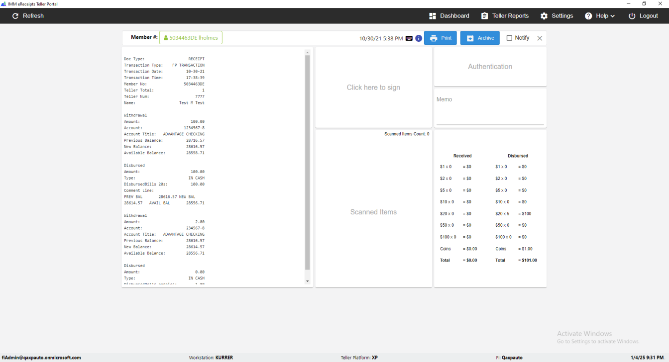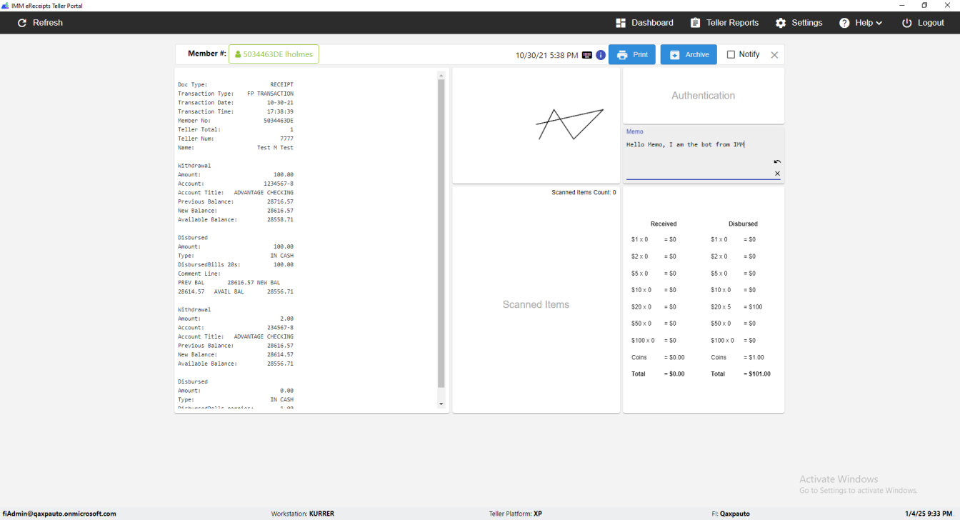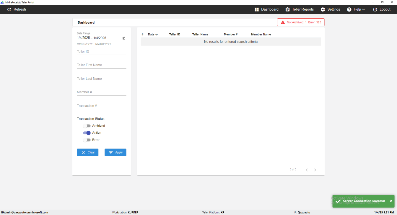 IMM eReceipts Teller Portal window switched successfully [ScreenShot]