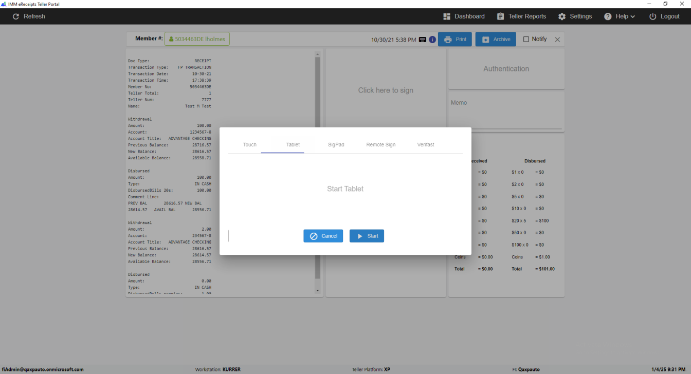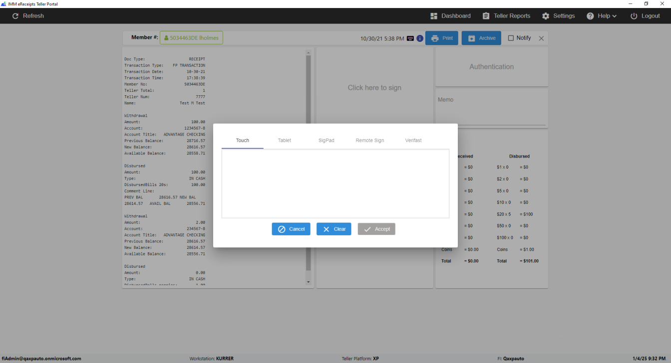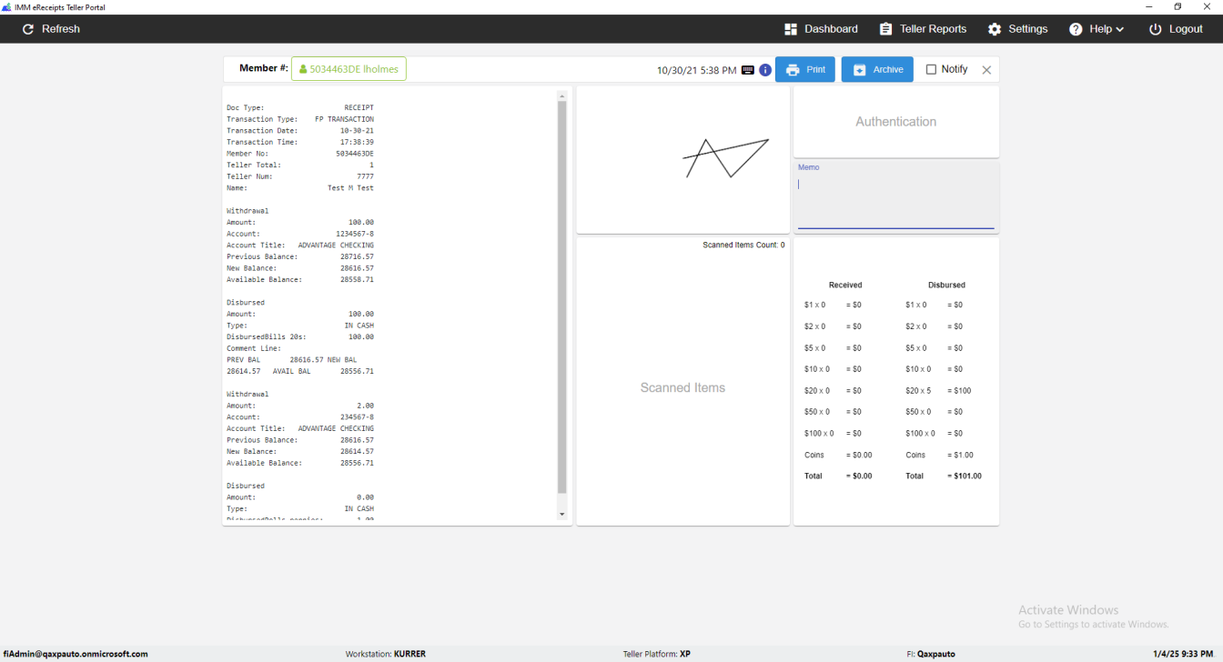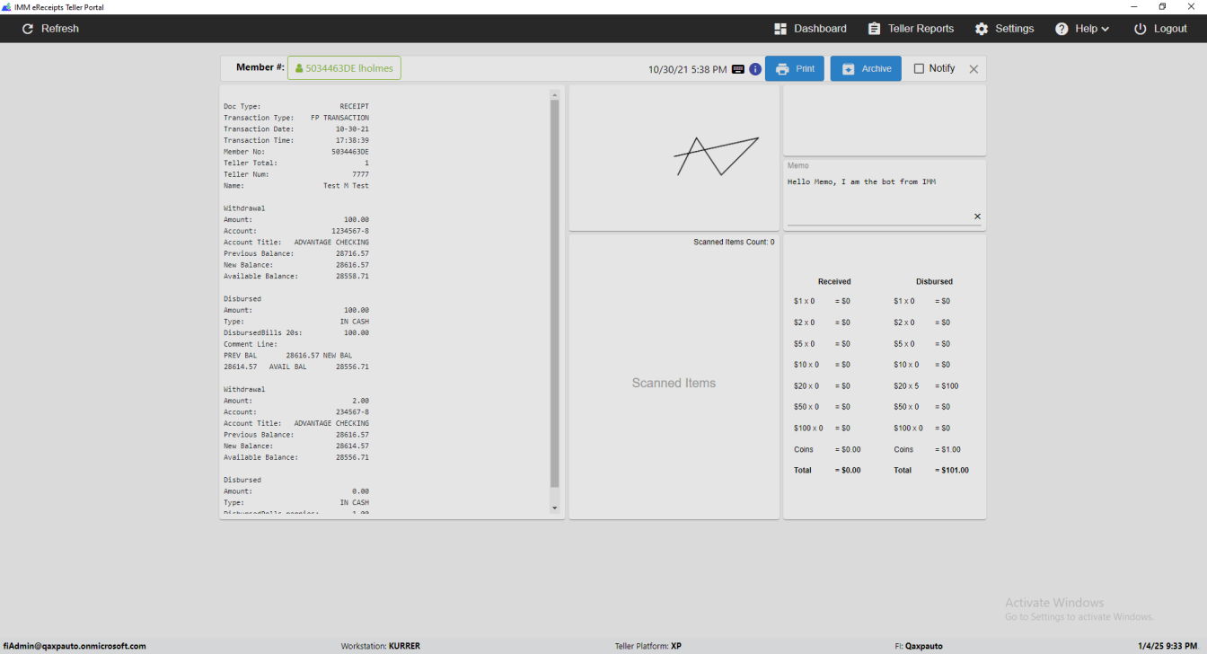IMM eReceipts Teller Portal window switched successfully [ScreenShot]