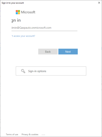 fiAdmin@Qaxpauto.onmicrosoft.com has been set successfully in the field Enter your email or phone [ScreenShot]