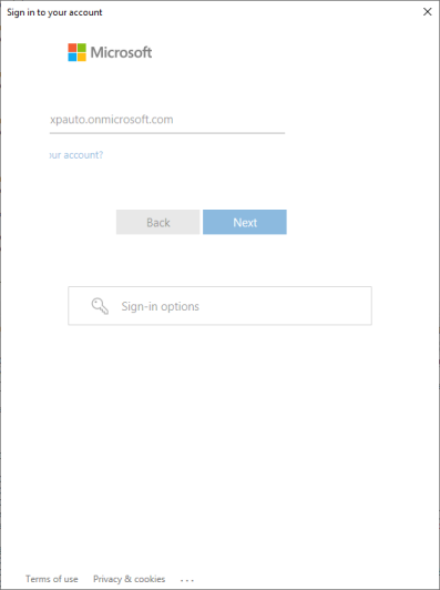 Login into Microsoft...