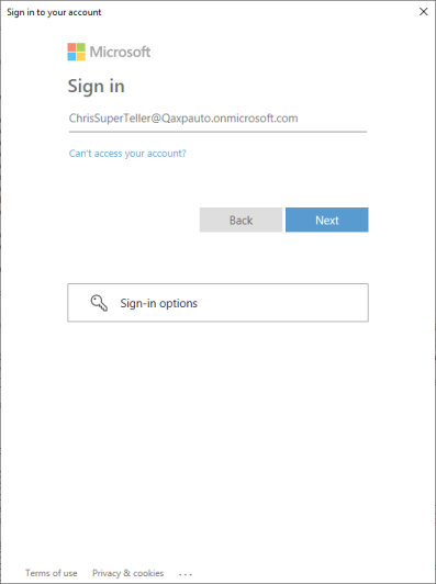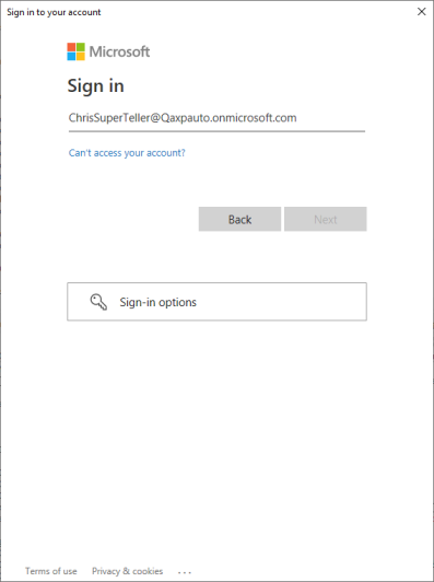 ChrisSuperTeller@Qaxpauto.onmicrosoft.com has been set successfully in the field Enter your email or phone [ScreenShot]