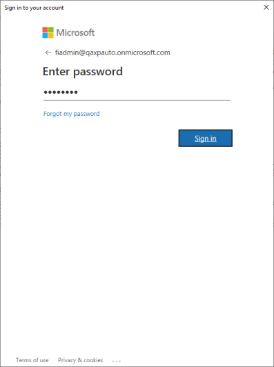 [ScreenShot] fiadmin@Qaxpauto.onmicrosoft.com has been set successfully in the field Enter your email or phone