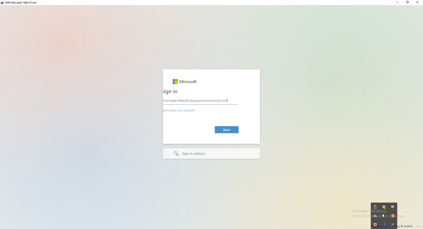 | {TestID=login, Description=Login to Ereceipt, Userid=ChrisSuperTeller@Qaxpauto.onmicrosoft.com, Password=iMM2022!} |