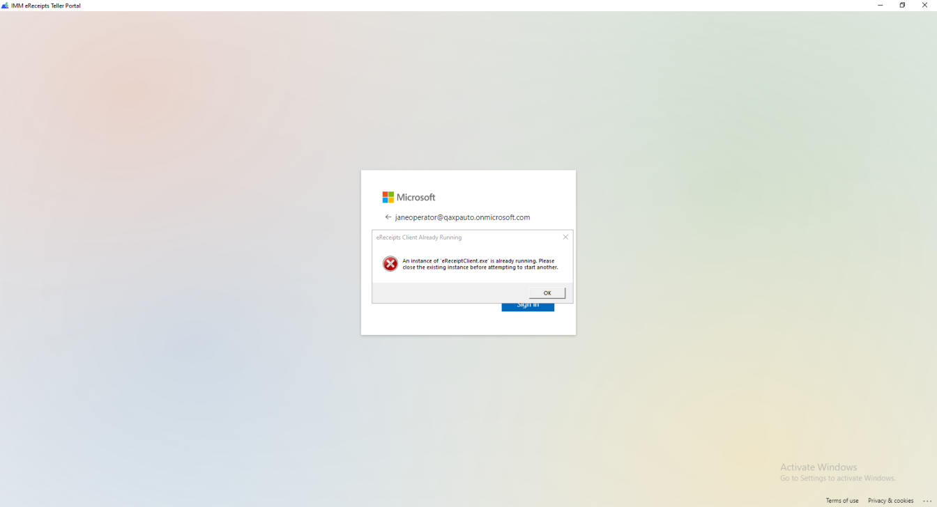 java.lang.Exception: Unable to switch window to : IMM eReceipts Teller Portal