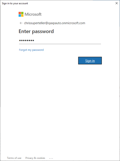 ChrisSuperTeller@Qaxpauto.onmicrosoft.com has been set successfully in the field Enter your email or phone [ScreenShot]