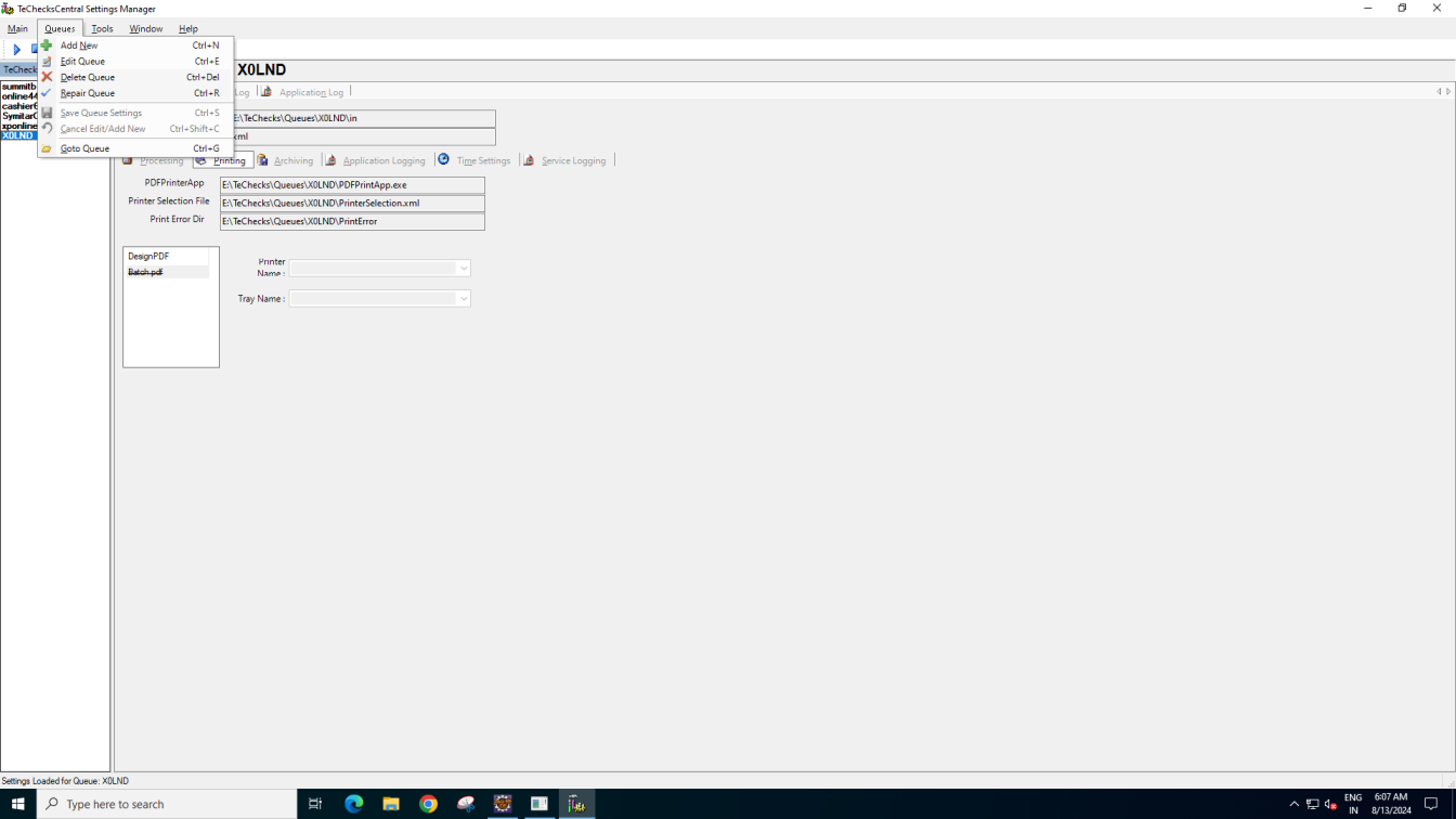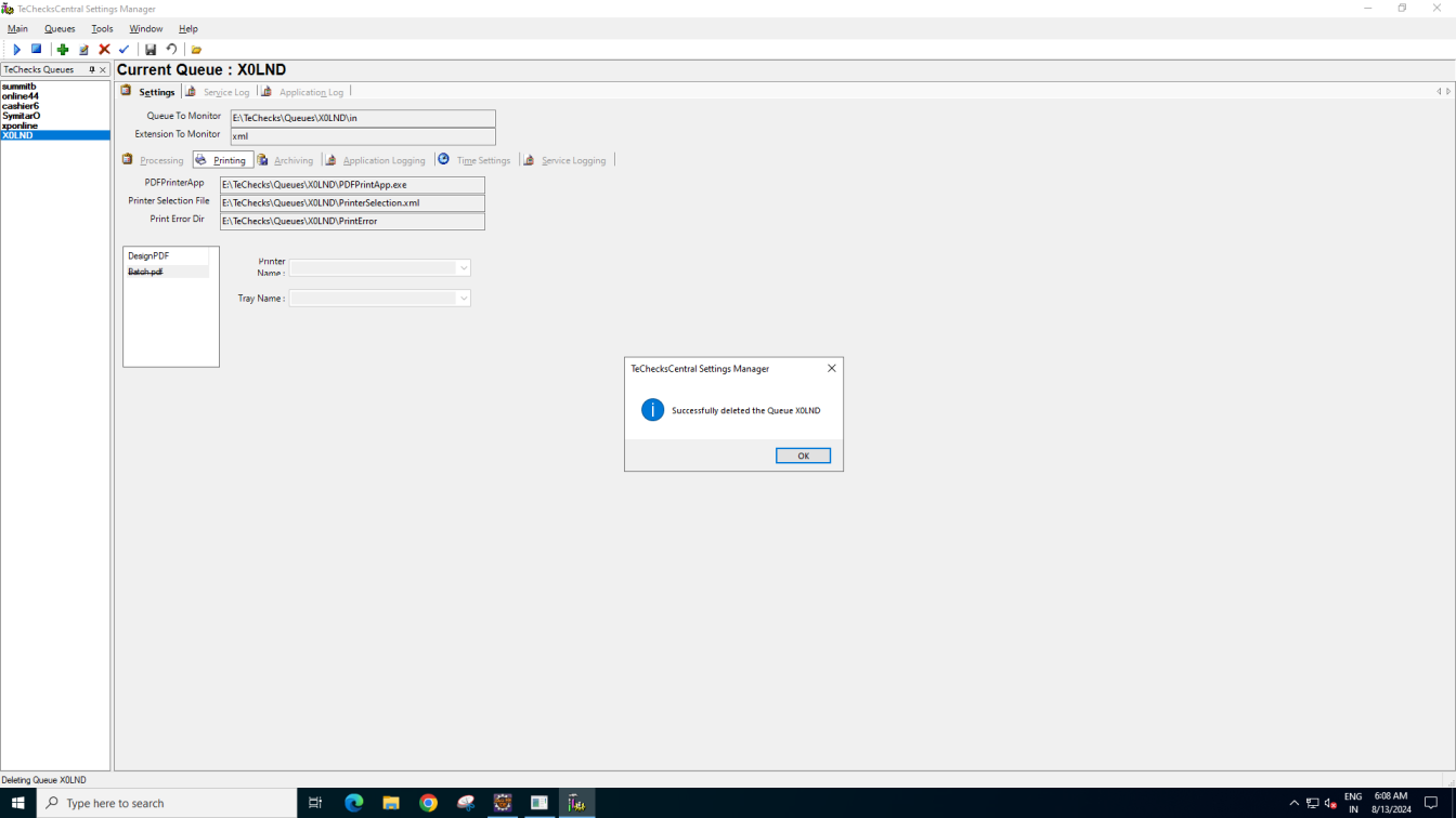 Folder E:\TeChecks\Queues\X0LND has been deleted successfully |