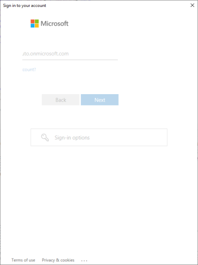 fiadmin@Qaxpauto.onmicrosoft.com has been set successfully in the field Enter your email or phone [ScreenShot]