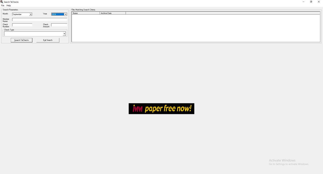 #TC23 Launch TeChecks Search and Go to the E:\TeChecks\TeChecksIndexBuilder\Dependencies\" folder.Rename the IndexingLogic.enc file to IndexingLogic_Default.enc Rename the IndexingLogic_Monthly.enc file to IndexingLogic.enc Restart TeChecks IndexBuilder service from Windows Services.Now you should see check type like below under Check type drop-down - AUDIO, CASHIER, ONLINE etc