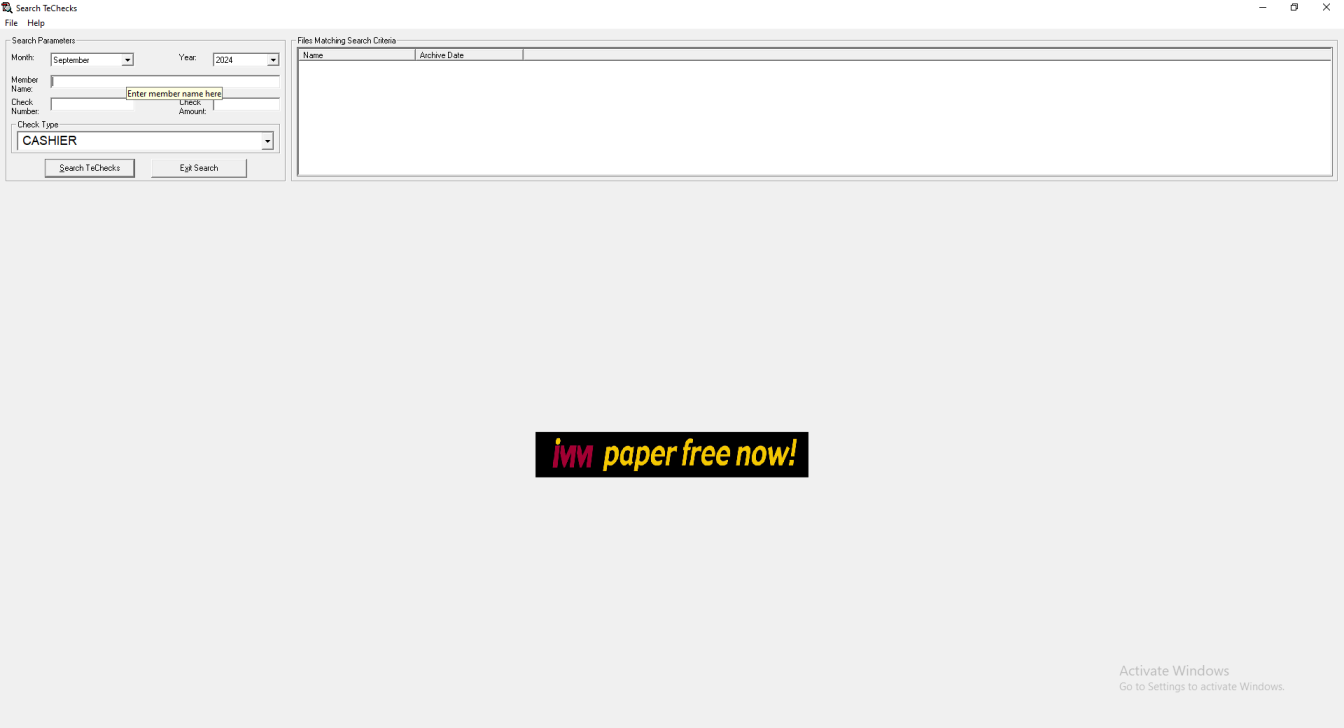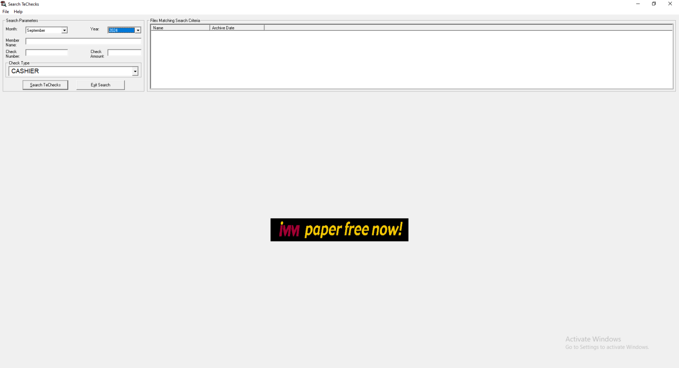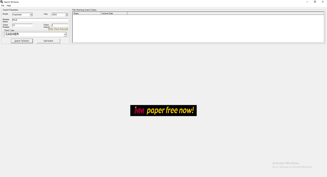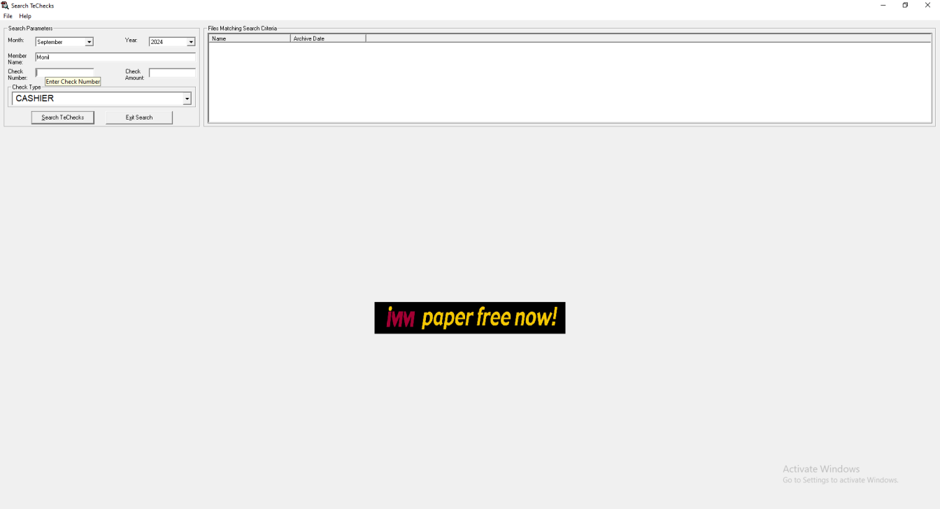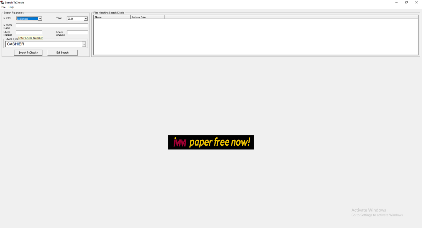 #TC23 Launch TeChecks Search and Go to the E:\TeChecks\TeChecksIndexBuilder\Dependencies\" folder.Rename the IndexingLogic.enc file to IndexingLogic_Default.enc Rename the IndexingLogic_Monthly.enc file to IndexingLogic.enc Restart TeChecks IndexBuilder service from Windows Services.Now you should see check type like below under Check type drop-down - AUDIO, CASHIER, ONLINE etc