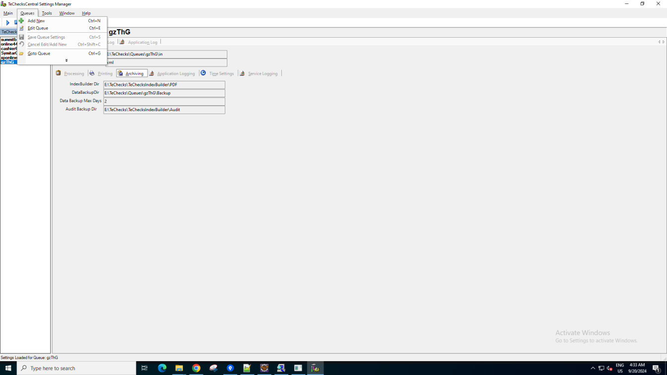 (#TC1 Stop Windows Services, Add New Queue, Verify Queue Folders, Edit Queue, Repair Queue, Delete Queue and delete the queue folder and Start the services again)