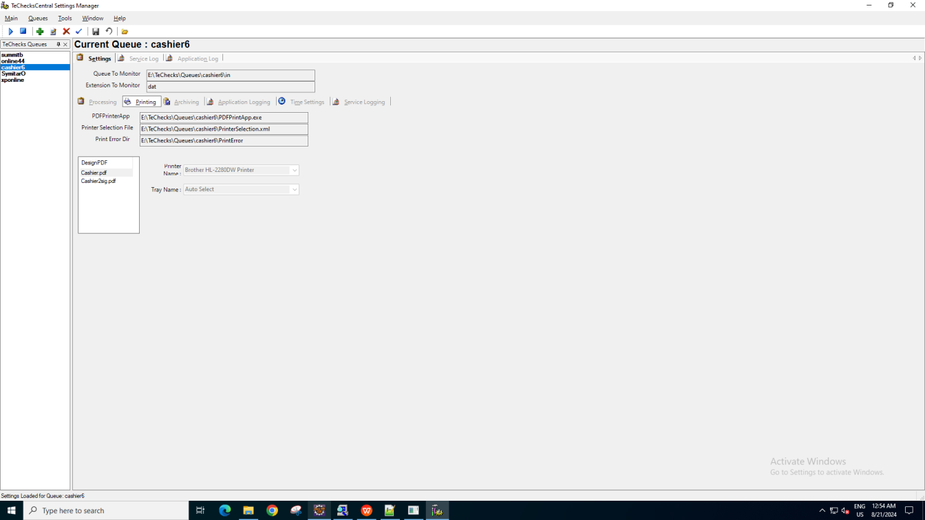 [ScreenShot] Value of PDF Printer App is : E:\TeChecks\Queues\cashier6\PDFPrintApp.exe