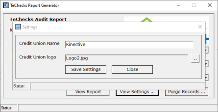 #TC29 Open Audit Report and Click on View Settings, Set Credit Union Name and Logo file and Save the setting