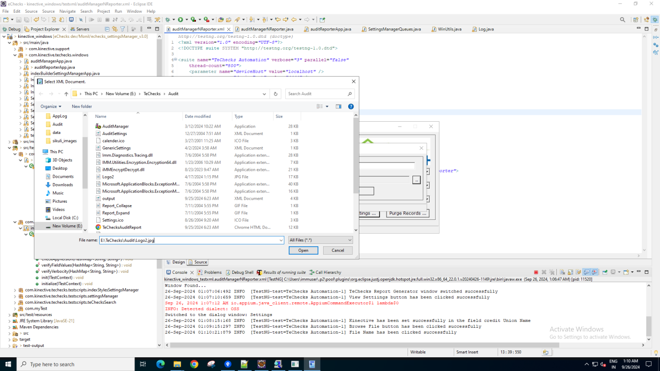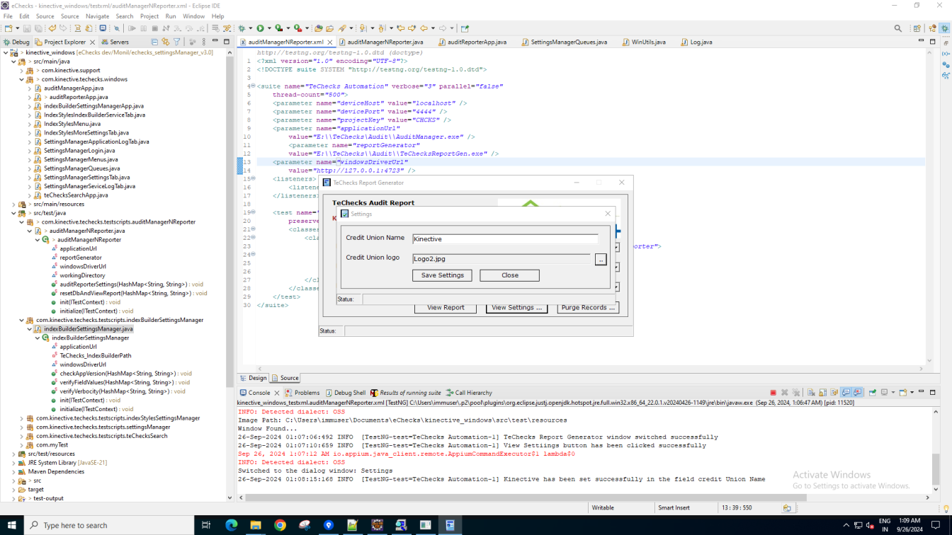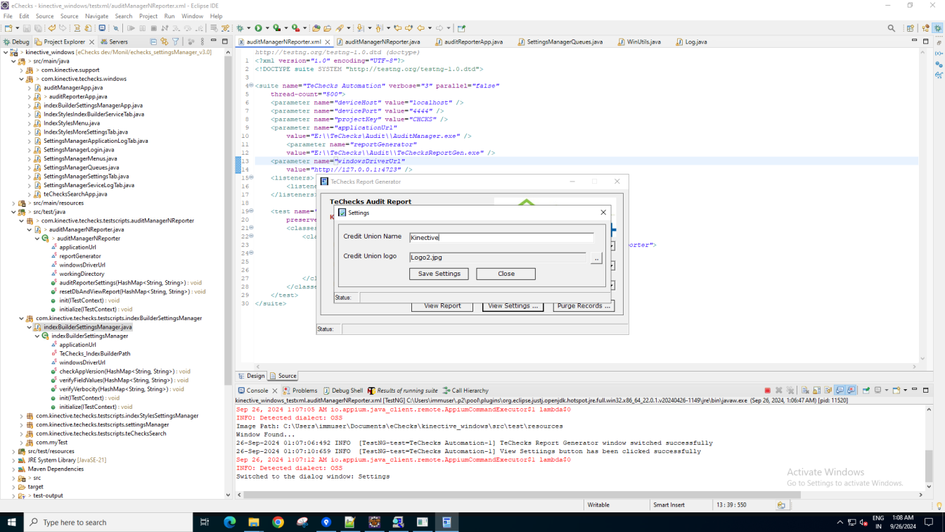 ({TestID=auditReporterSettings, QueueMap=, Description=#TC29 Open Audit Report and Click on View Settings, Set Credit Union Name and Logo file and Save the setting, SettingsMap=cuName:Kinective;cuPath:E:\TeChecks\Audit\Logo2.jpg})