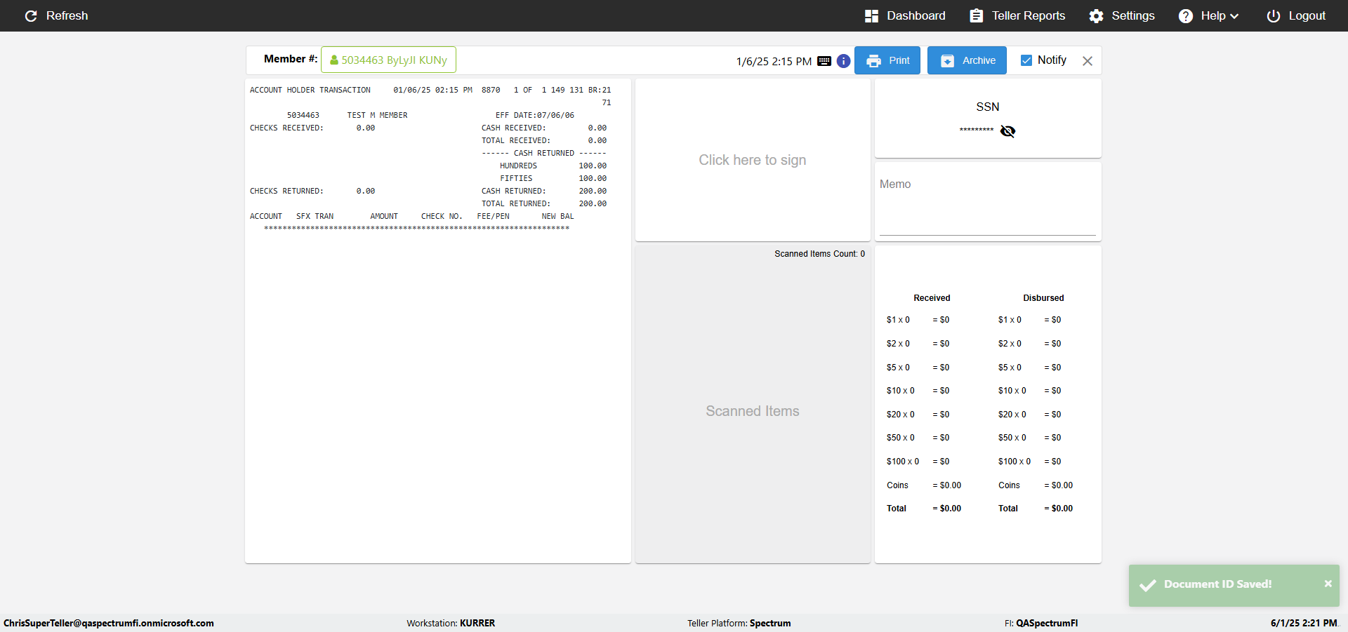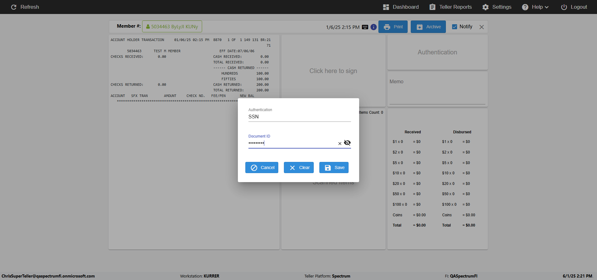 | {Toggel=, Archived Transactions=no, Description=, Email=, Archive=, Document Type=SSN, Notify=, SignatureTab=, DisbursedExpression=, Operation=, Teller LastName=, Disbursed cash=, errorint=, TestID=verifyAuthenticationMemoAndScannedItemscardInReceiptPage, Print=, DisbursedExpressionValue=, Phone=, ReceivedCashValue=, Member=, UserPwd=iMM2022!, Transtatus=Archived-false;Active-true;Error-false, Docment ID=216554066, Teller=, Teller FirstName=, errorMessage=, ReceivedExpressionValue=, SecondName=, Date=, Platfrom=, Received cash=, Transaction=, Header=, Expression=, Username=ChrisSuperTeller@qaspectrumfi.onmicrosoft.com, DisbursedCashValue=, FullName=, ReceivedExpression=, SMS=, Memo=Given to the client} |