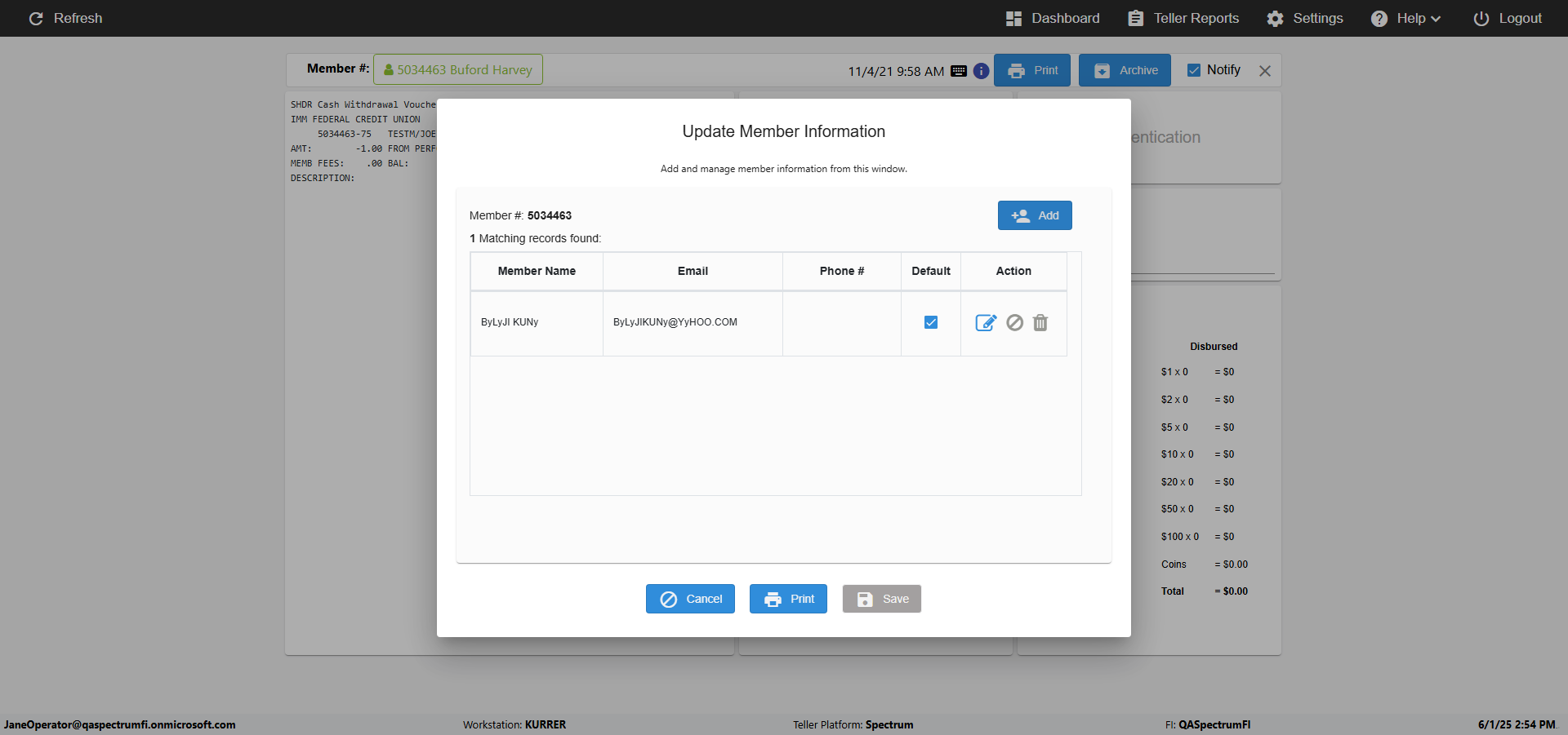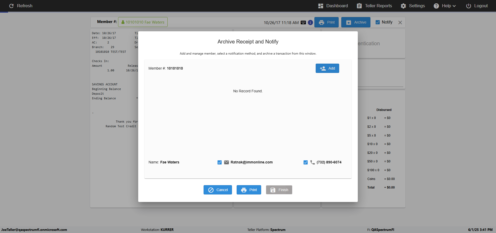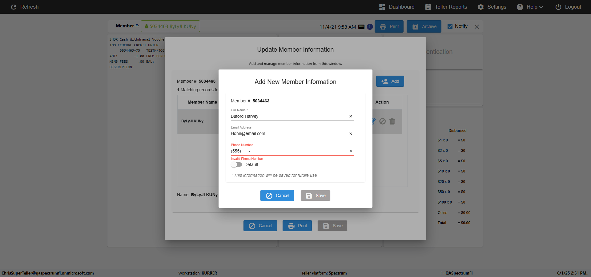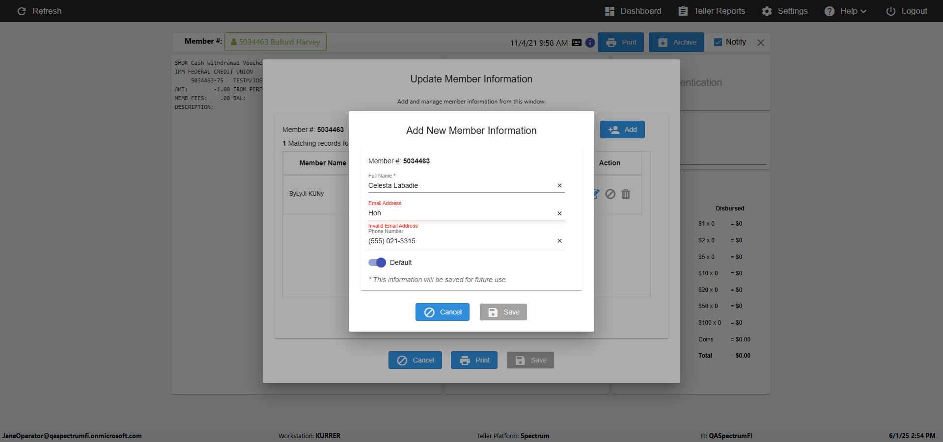 | {Toggel=TRUE, Archived Transactions=no, Description=verify behavior when Memebr Name is present only in Deposit DatFile, Email=Ratnak@immonline.com, Archive=, Document Type=, Notify=, SignatureTab=, DisbursedExpression=, Operation=, Teller LastName=, Disbursed cash=, errorint=, TestID=verifyNormalTellerMemberNameOnlyinDatFile, Print=, DisbursedExpressionValue=, Phone=(732) 890-6074, ReceivedCashValue=, Member=7654321, UserPwd=iMM2022!, Transtatus=Archived-false;Active-true;Error-false, Docment ID=, Teller=, Teller FirstName=, errorMessage=, ReceivedExpressionValue=, SecondName=, Date=, Platfrom=, Received cash=, Transaction=, Header=, Expression=, Username=JoeTeller@qaspectrumfi.onmicrosoft.com, DisbursedCashValue=, FullName=Johna, ReceivedExpression=, SMS=, Memo=} |