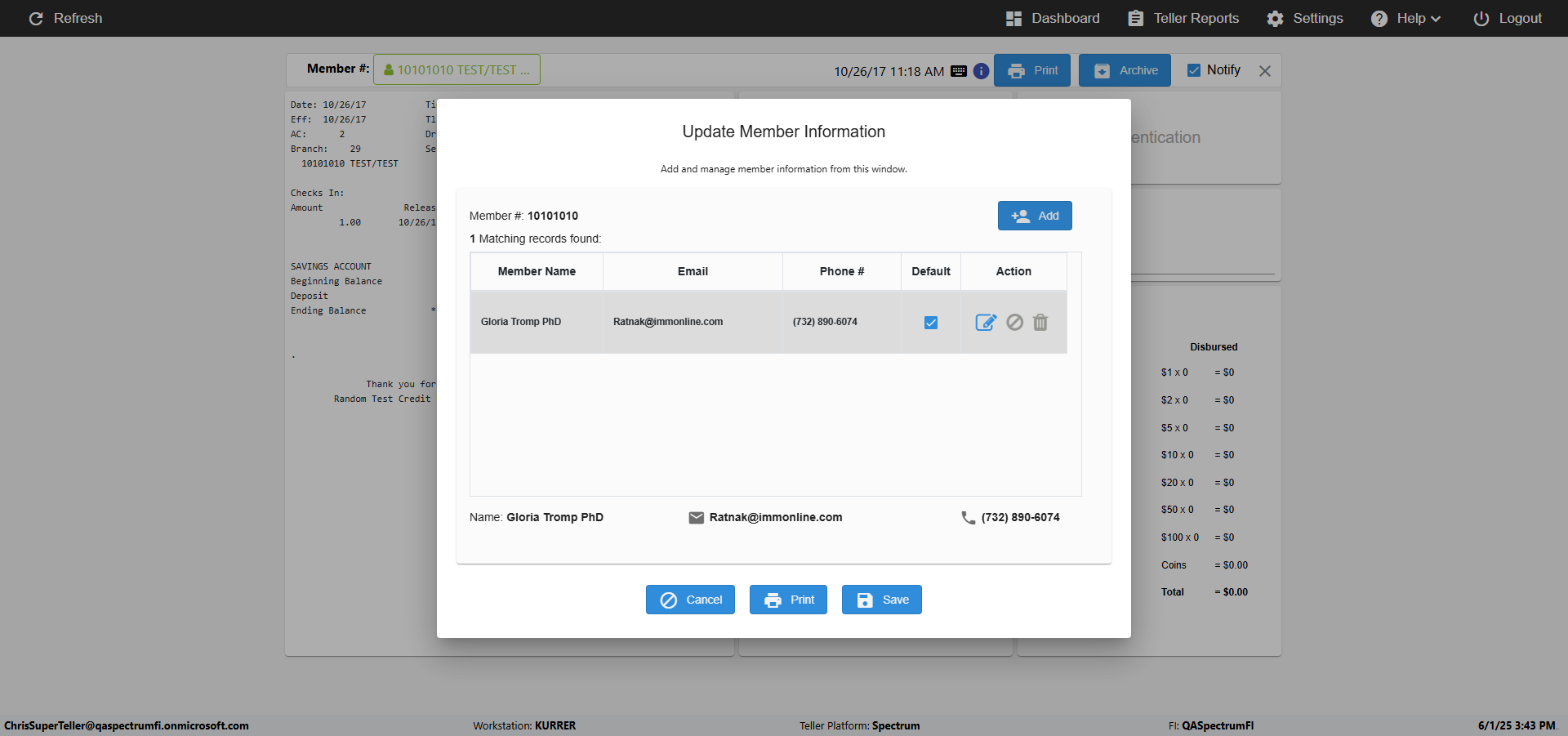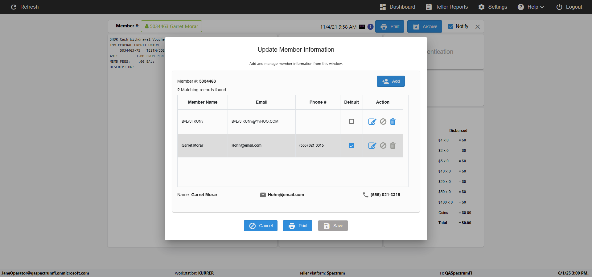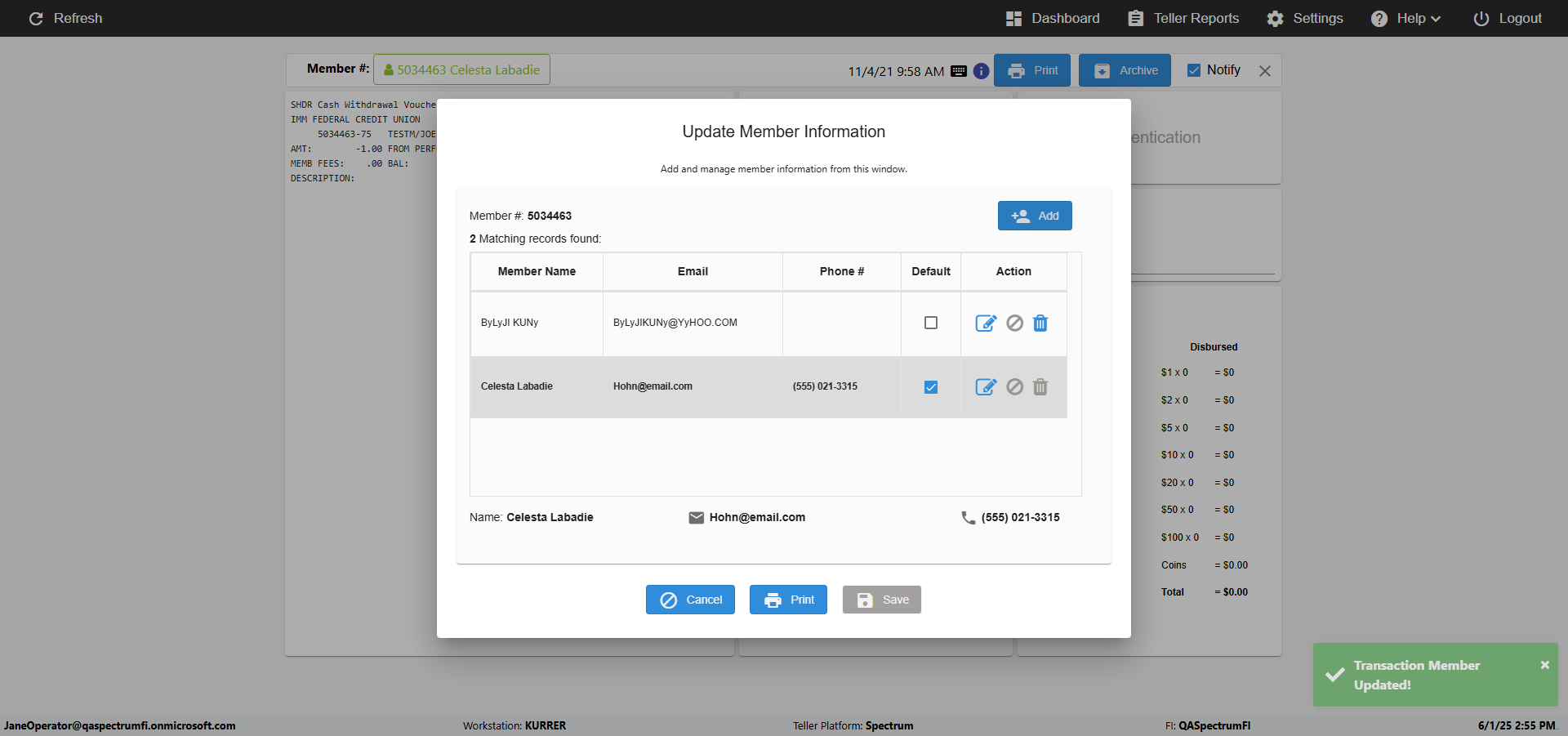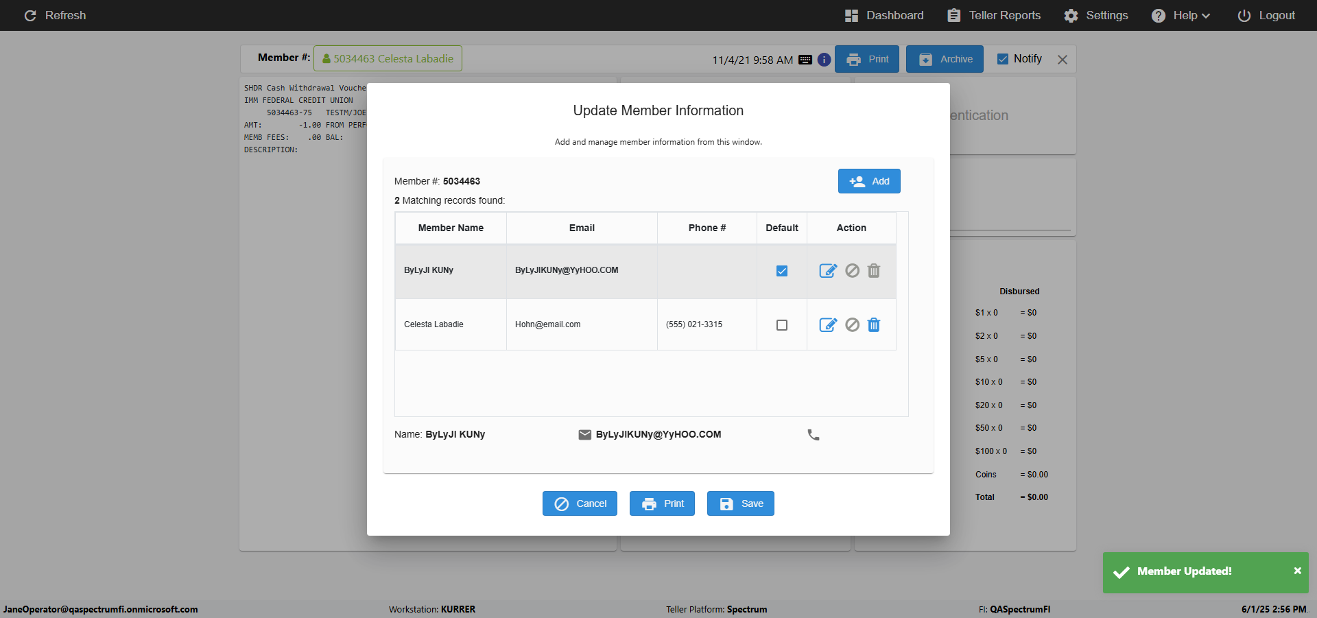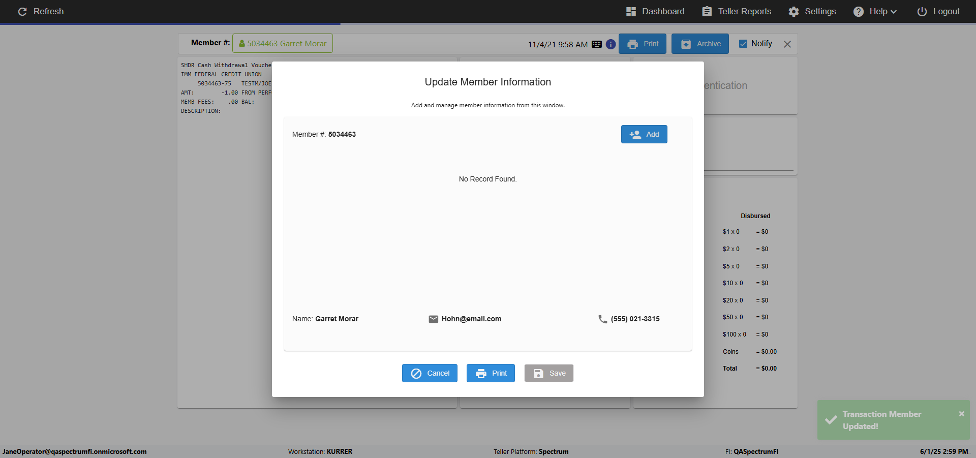 | {Toggel=TRUE, Archived Transactions=no, Description=verify behavior when Memebr Name is present only in Deposit DatFile, Email=Ratnak@immonline.com, Archive=, Document Type=, Notify=, SignatureTab=, DisbursedExpression=, Operation=, Teller LastName=, Disbursed cash=, errorint=, TestID=verifyNormalTellerMemberNameOnlyinDatFile, Print=, DisbursedExpressionValue=, Phone=(732) 890-6074, ReceivedCashValue=, Member=7654321, UserPwd=iMM2022!, Transtatus=Archived-false;Active-true;Error-false, Docment ID=, Teller=, Teller FirstName=, errorMessage=, ReceivedExpressionValue=, SecondName=, Date=, Platfrom=, Received cash=, Transaction=, Header=, Expression=, Username=JoeTeller@qaspectrumfi.onmicrosoft.com, DisbursedCashValue=, FullName=Johna, ReceivedExpression=, SMS=, Memo=} |
