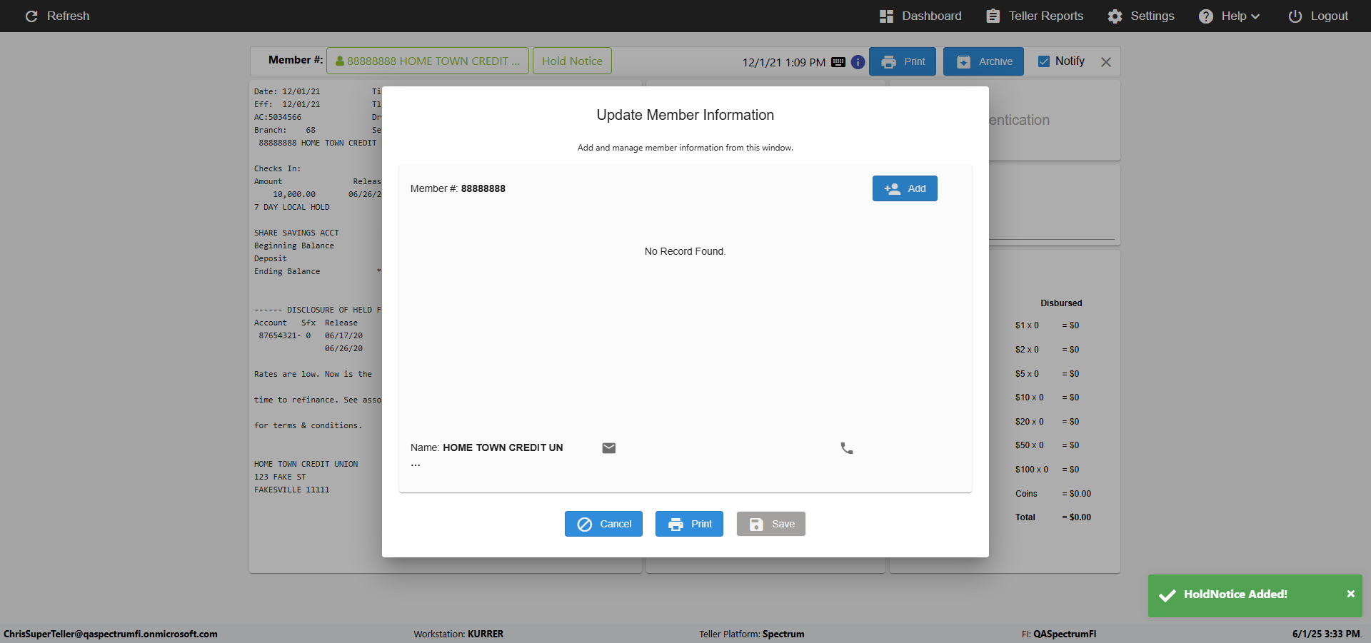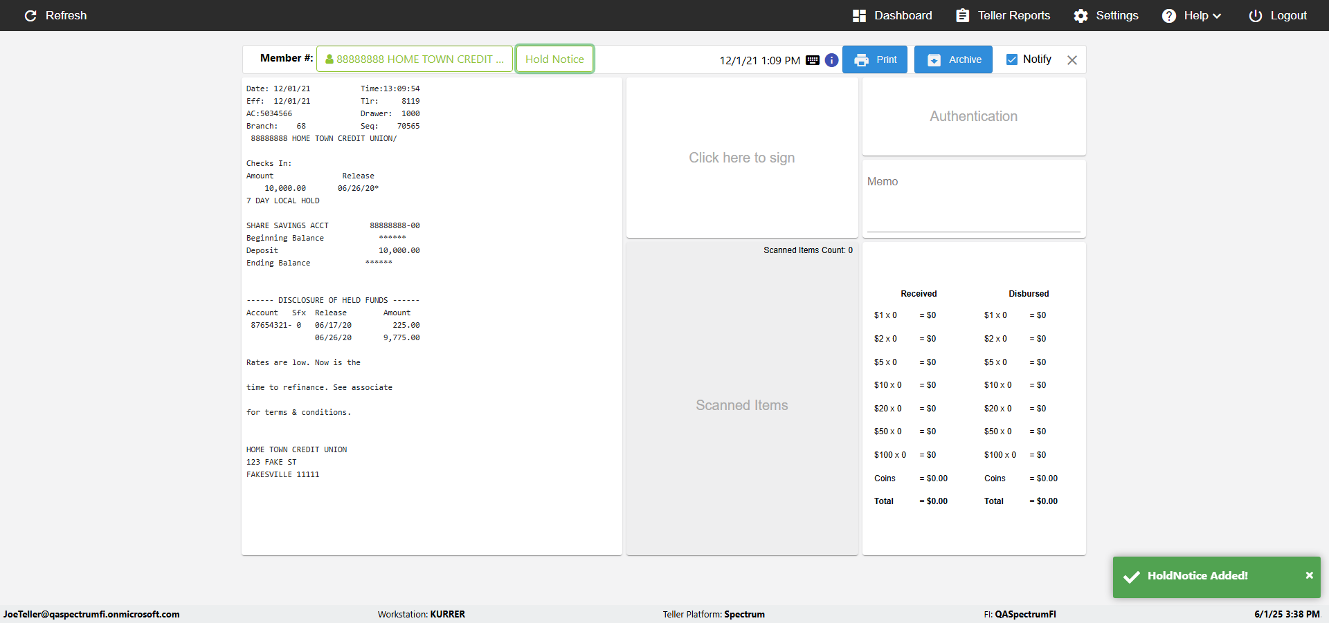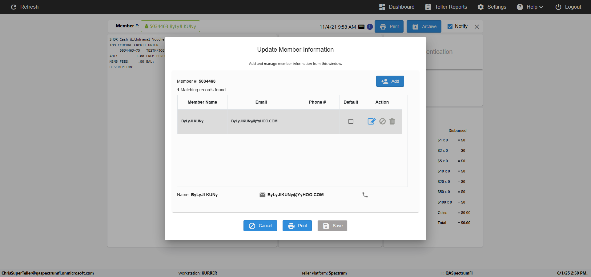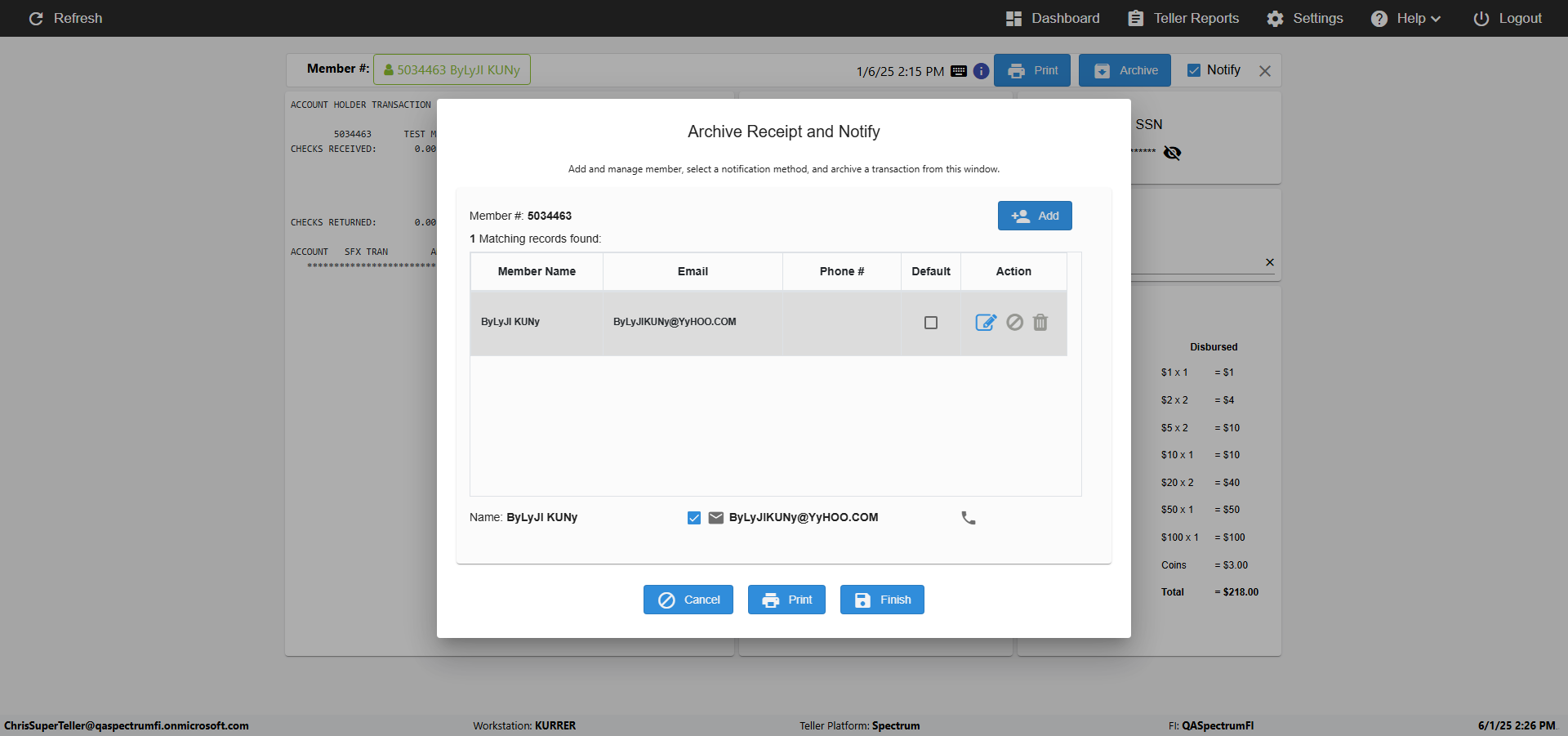 | {Toggel=TRUE, Archived Transactions=no, Description=verify behavior when Memebr Name is present only in Deposit DatFile, Email=Ratnak@immonline.com, Archive=, Document Type=, Notify=, SignatureTab=, DisbursedExpression=, Operation=, Teller LastName=, Disbursed cash=, errorint=, TestID=verifyNormalTellerMemberNameOnlyinDatFile, Print=, DisbursedExpressionValue=, Phone=(732) 890-6074, ReceivedCashValue=, Member=7654321, UserPwd=iMM2022!, Transtatus=Archived-false;Active-true;Error-false, Docment ID=, Teller=, Teller FirstName=, errorMessage=, ReceivedExpressionValue=, SecondName=, Date=, Platfrom=, Received cash=, Transaction=, Header=, Expression=, Username=JoeTeller@qaspectrumfi.onmicrosoft.com, DisbursedCashValue=, FullName=Johna, ReceivedExpression=, SMS=, Memo=} |