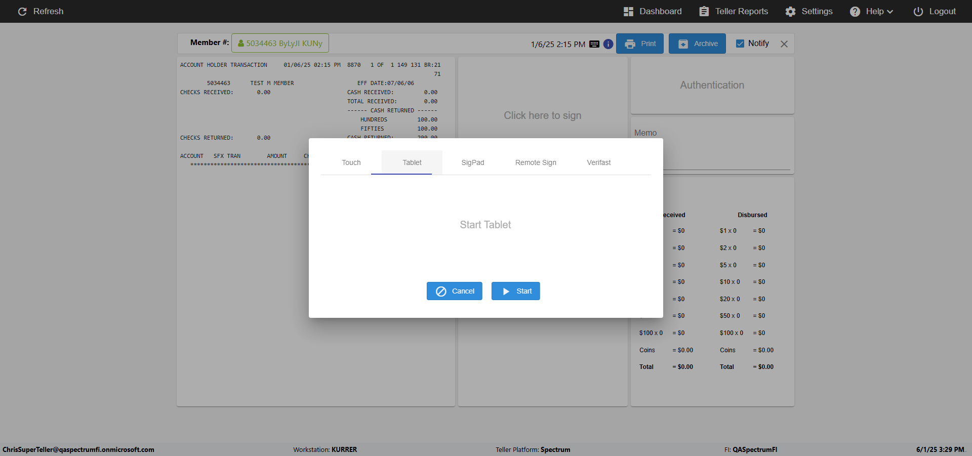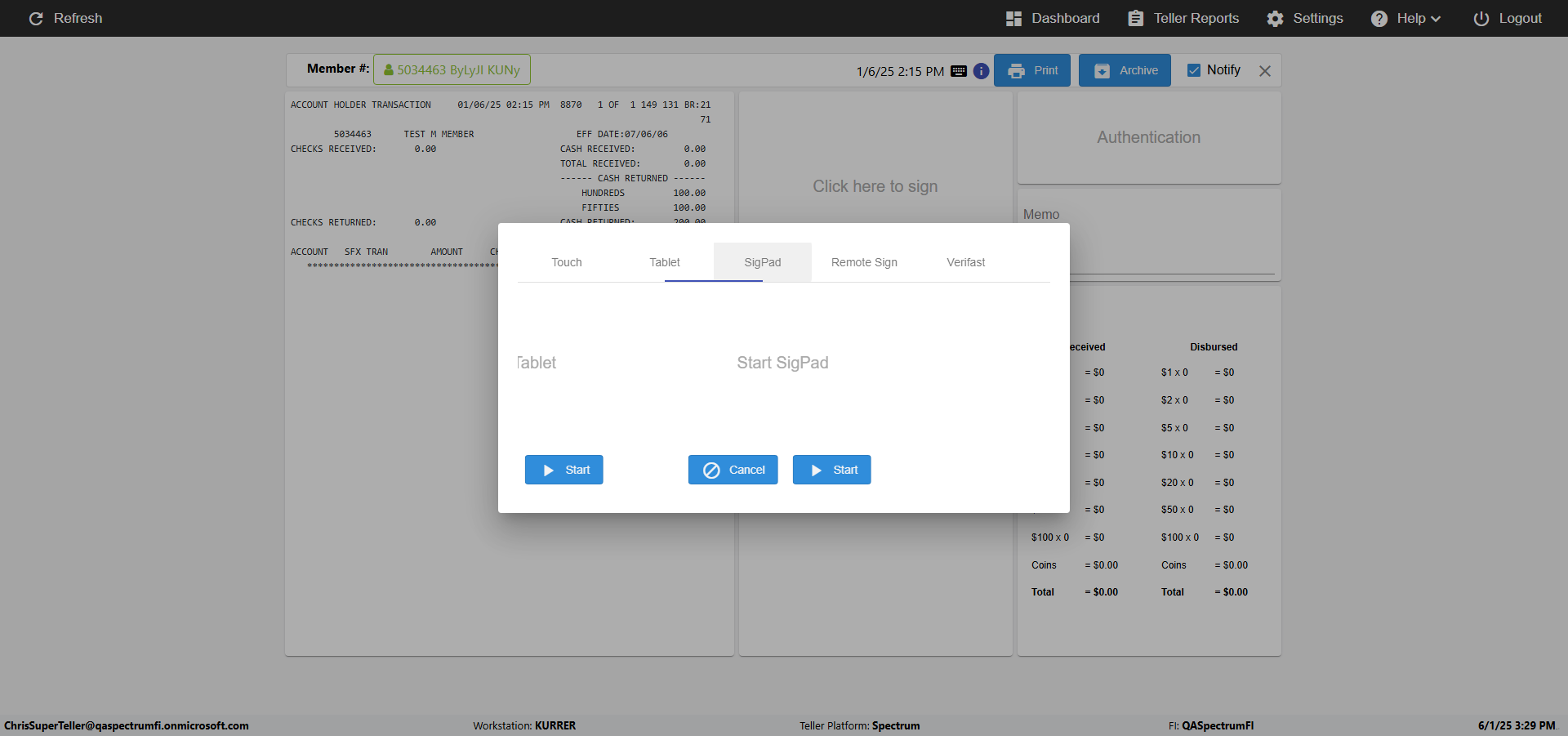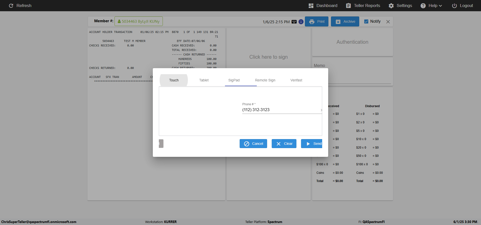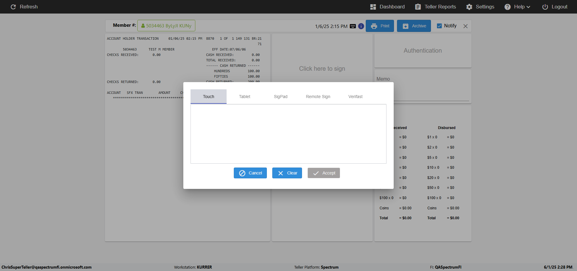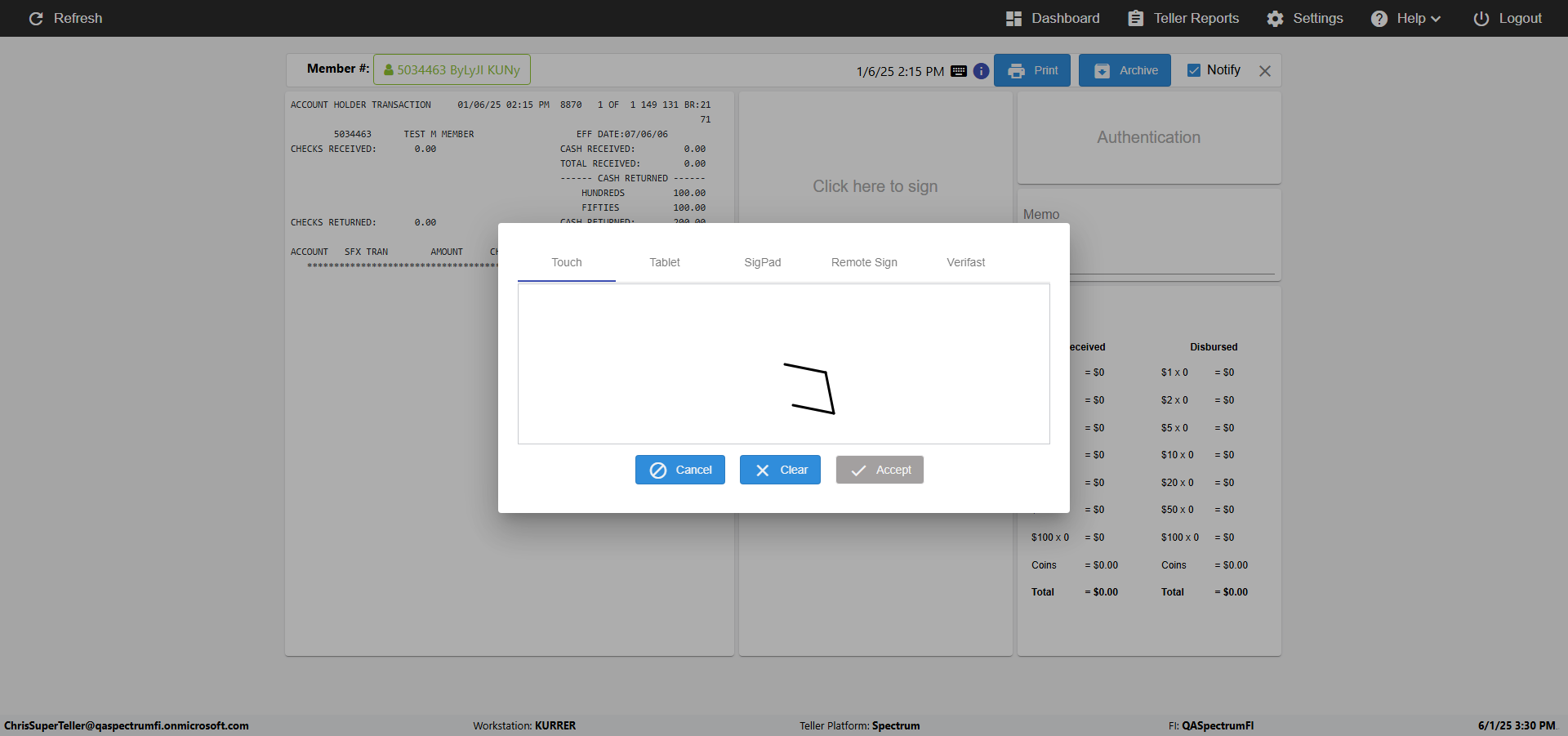 | {Toggel=, Archived Transactions=no, Description=verify touch signature in Receipt Page, Email=FALSE, Archive=FALSE, Document Type=, Notify=TRUE, SignatureTab=Touch,, DisbursedExpression=|-10*5, Operation=, Teller LastName=, Disbursed cash=, errorint=, TestID=verifyTouchSignatureEreceipt, Print=FALSE, DisbursedExpressionValue=TRUE, Phone=, ReceivedCashValue=FALSE, Member=, UserPwd=iMM2022!, Transtatus=Archived-false;Active-true;Error-false, Docment ID=, Teller=, Teller FirstName=Joe, errorMessage=, ReceivedExpressionValue=TRUE, SecondName=, Date=, Platfrom=, Received cash=, Transaction=, Header=, Expression=, Username=ChrisSuperTeller@qaspectrumfi.onmicrosoft.com, DisbursedCashValue=FALSE, FullName=, ReceivedExpression=|+100*2, SMS=FALSE, Memo=} |
