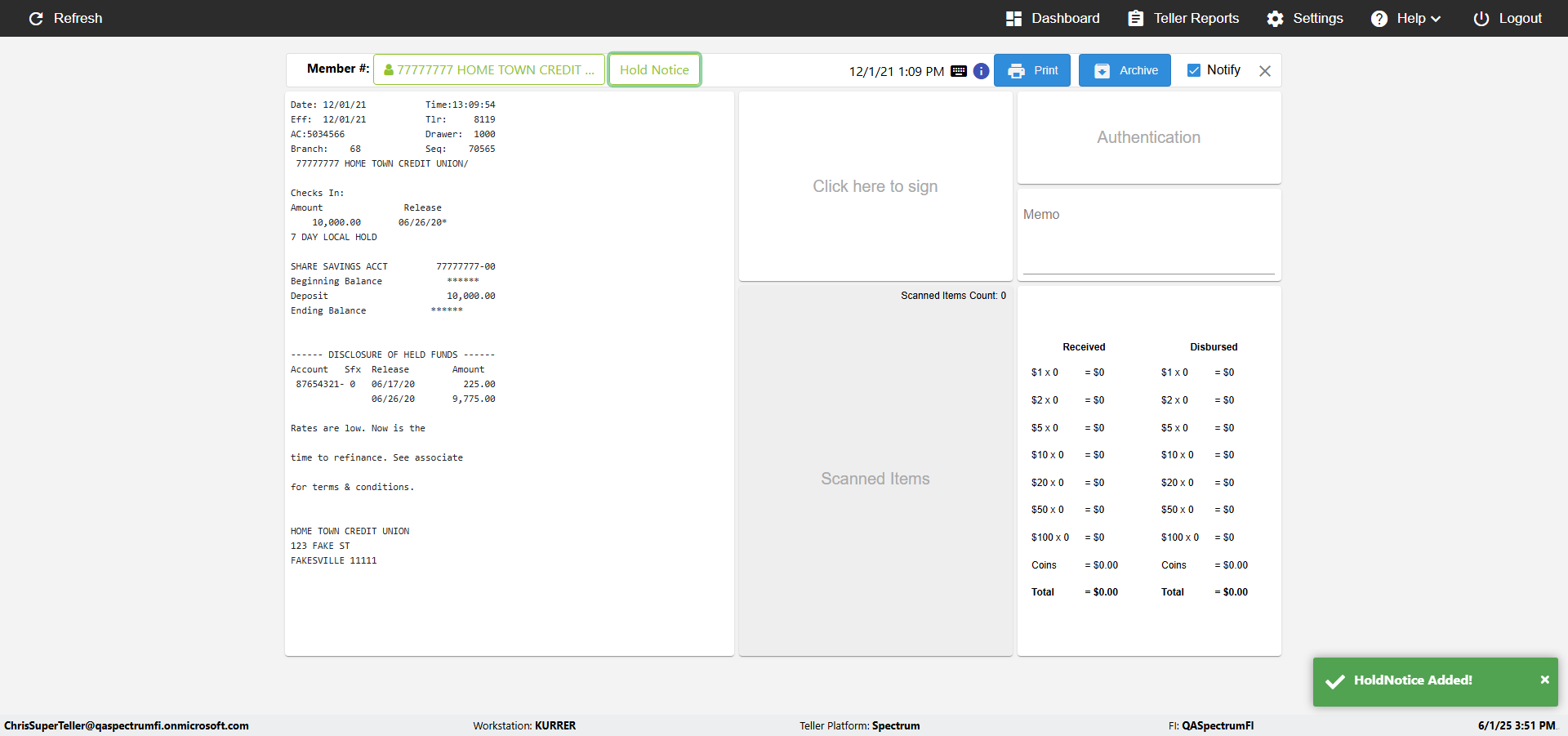 | {Toggel=, Archived Transactions=no, Description=verify Hold Notice Warning Message not displayed when warning is disabled, Email=, Archive=, Document Type=, Notify=, SignatureTab=, DisbursedExpression=, Operation=, Teller LastName=, Disbursed cash=, errorint=, TestID=verifyHoldNoticeWarningWithoutReasons, Print=, DisbursedExpressionValue=, Phone=, ReceivedCashValue=, Member=5034566, UserPwd=iMM2022!, Transtatus=Archived-false;Active-true;Error-false, Docment ID=, Teller=1881881, Teller FirstName=, errorMessage=, ReceivedExpressionValue=, SecondName=, Date=, Platfrom=Enable Hold Notice-true; Hold Notice Warning-false;, Received cash=, Transaction=, Header=, Expression=, Username=fiAdmin@qaspectrumfi.onmicrosoft.com, DisbursedCashValue=, FullName=, ReceivedExpression=, SMS=, Memo=} |