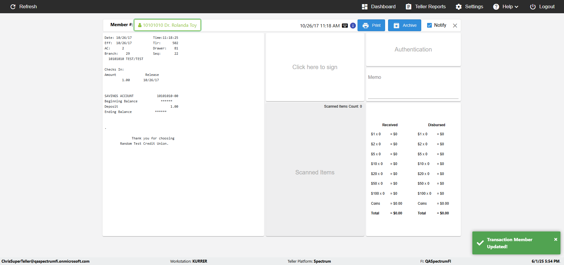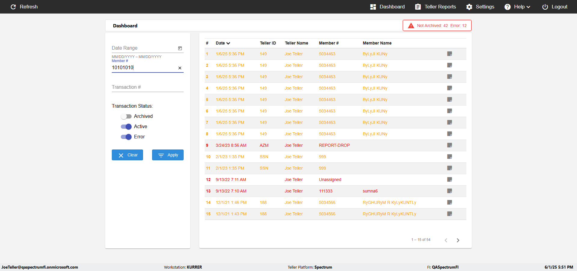 verifyTellersMemberNameinDatFileAndUpdate({Toggel=TRUE, Archived Transactions=no, Description=verify behavior when Memebr Name is DatFIle and ...)