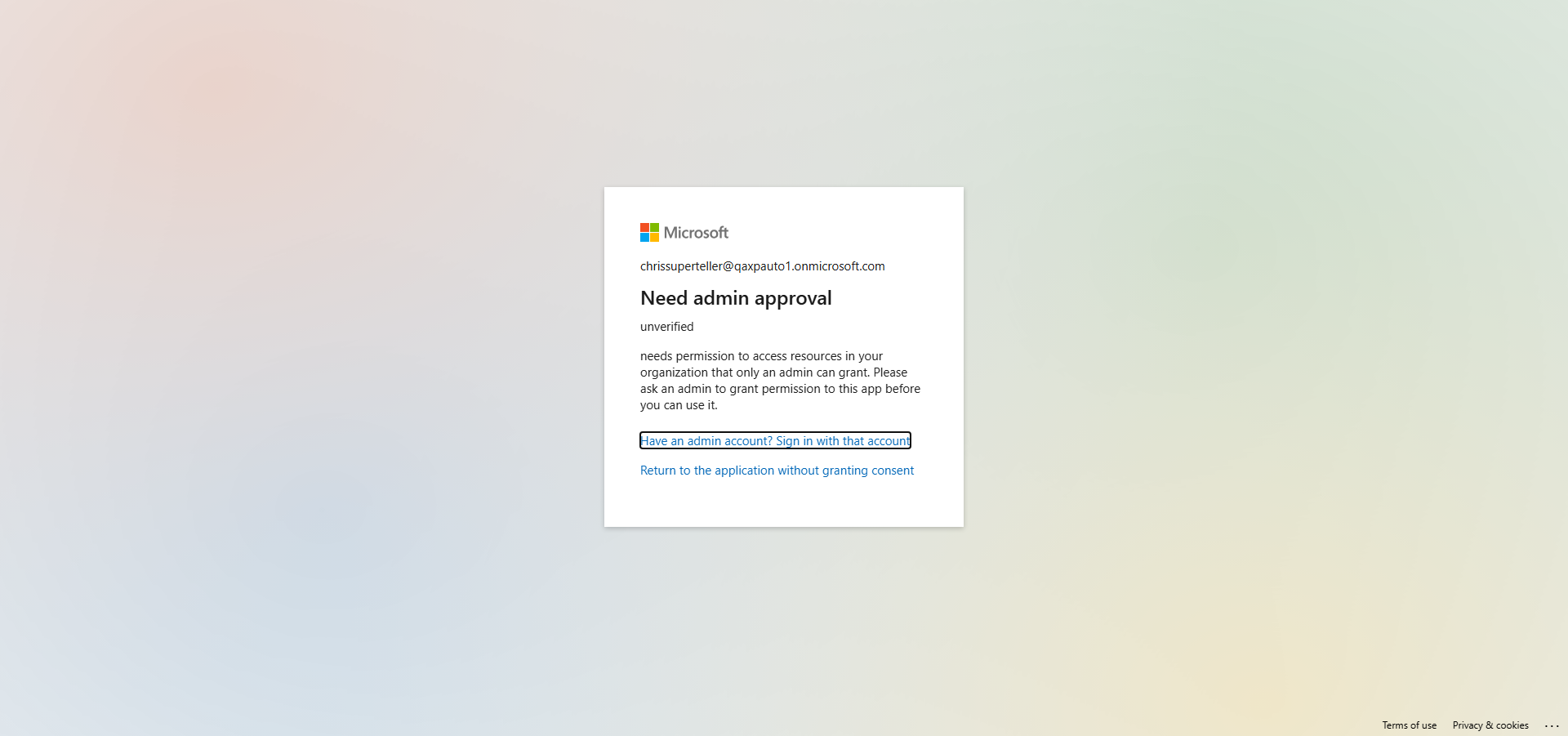 logged with the Username:ChrisSuperTeller@Qaxpauto1.onmicrosoft.com