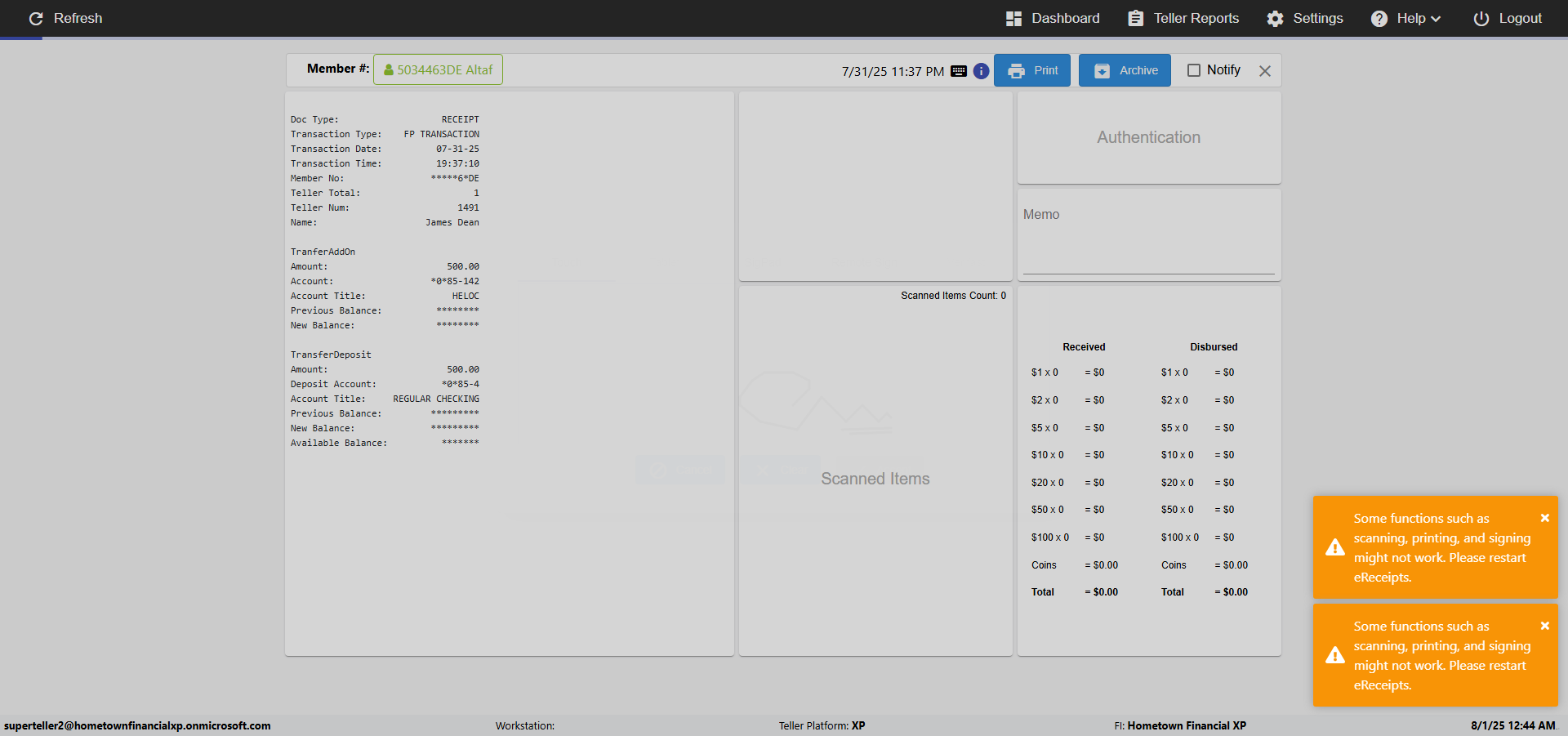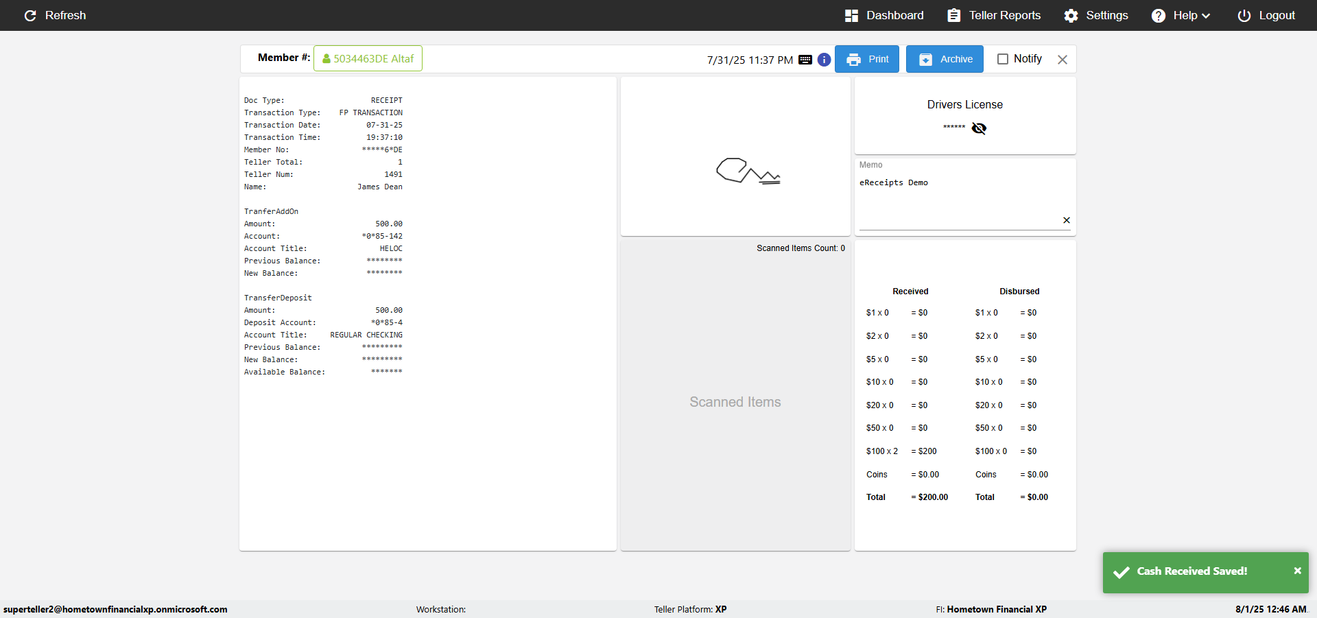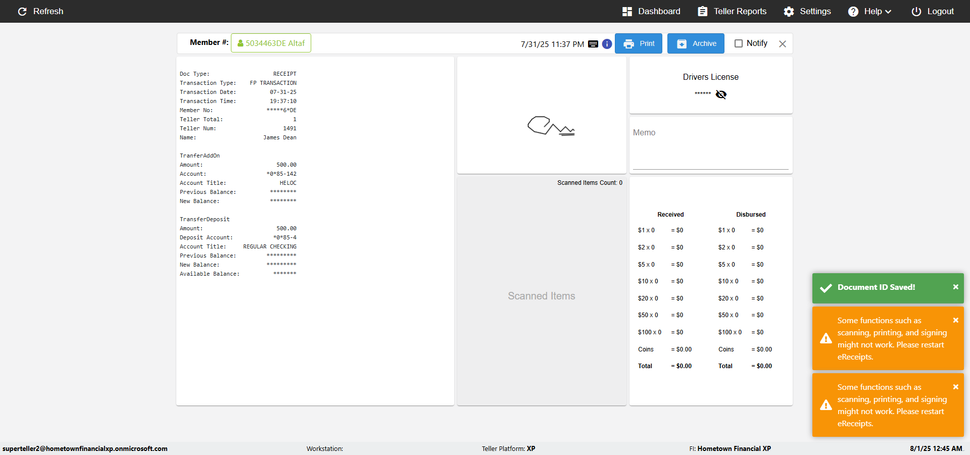 (verify MemberID And Archive Information for Normal teller In Receipt Page)