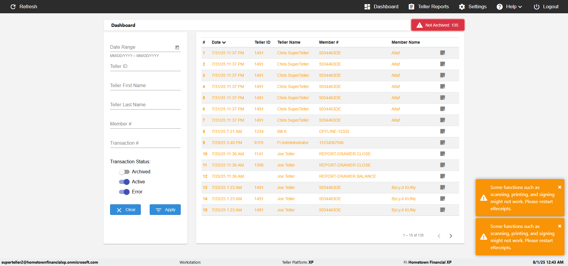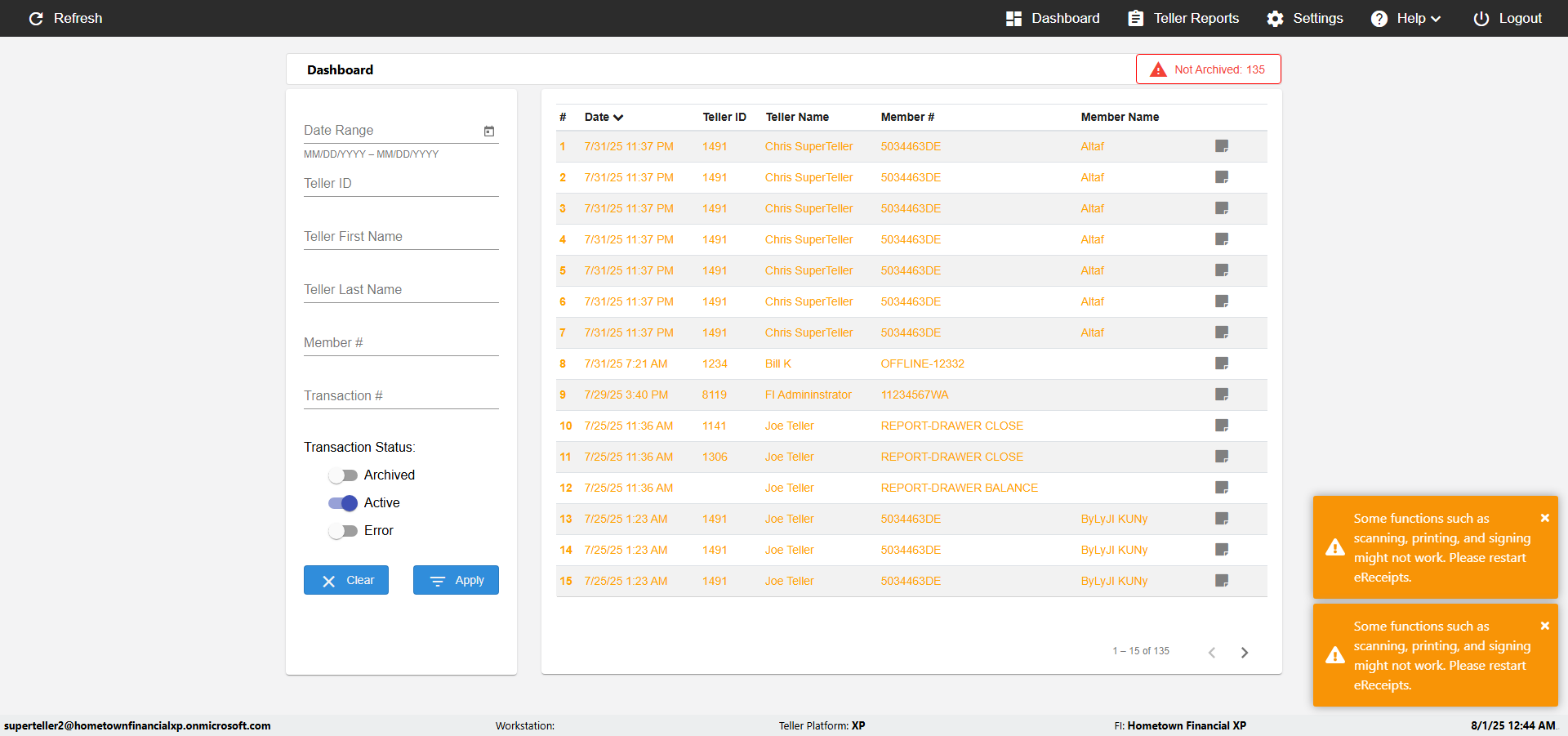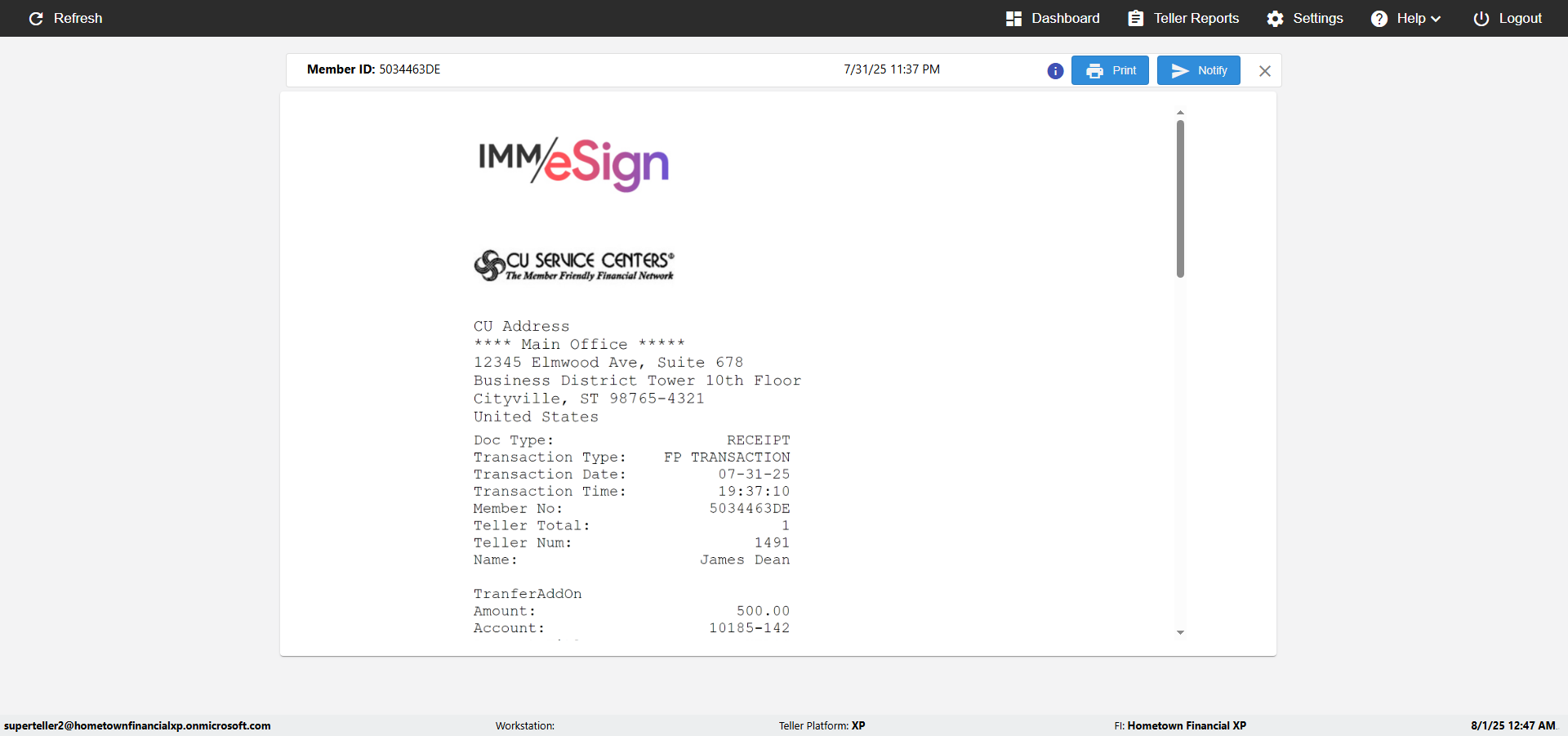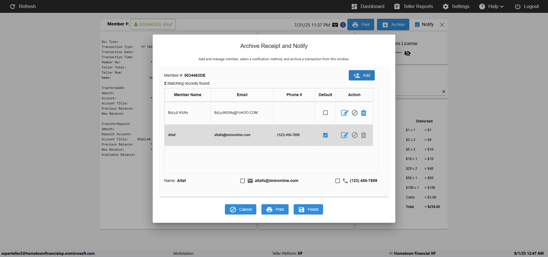 (verify MemberID And Archive Information for Normal teller In Receipt Page)