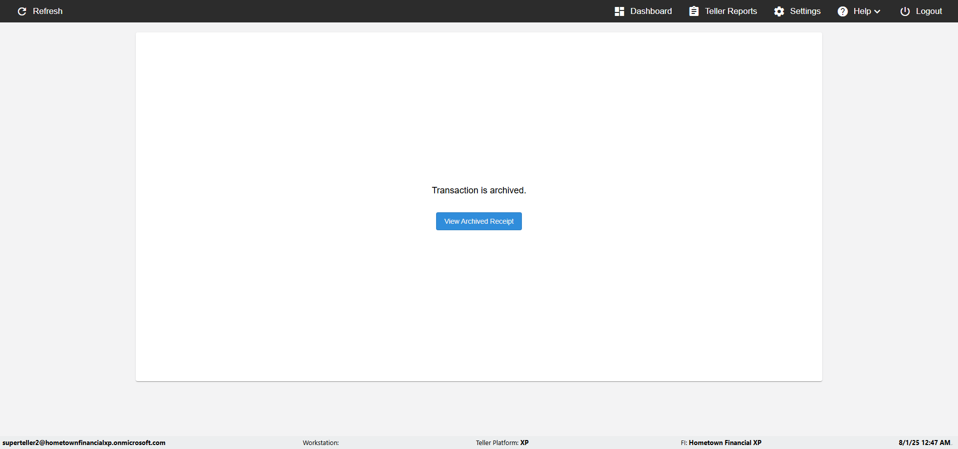 Actual(Passed): Transaction is archived.[ScreenShot]