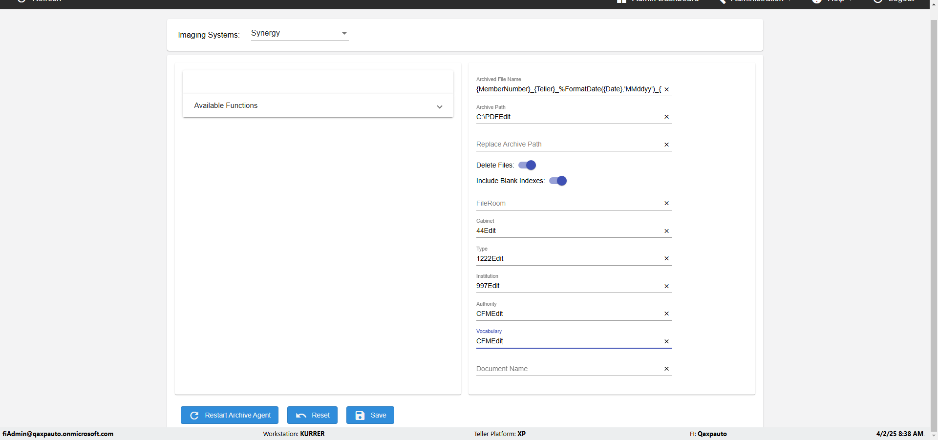 ({Archived Transactions=, Archive=, print signatur=, Name=, MultipleWorkstation=, WorkstationDeleteOption=, BranchName=, Agent=, UserPwd=iMM2022!, BranchDeleteOption=, Receipt=, Role=, Brand=, Print signature line=, TimeZone=, Header=, MappedOption=, Scan=, PortNumber=, FromWks=, FromBranch=, Description=Verify Imaging system UI elements, weeks=, Operation=, Clear=, TestID=verifyImagingSystem, Phone=, WorkstationName=, ToBranch=, ToWks=, Subscription Names=, FilePath=, Transtatus=Archived-false;Active-true;Error-false, Report=, Index_Field_Name=Archived File Name Template-{MemberNumber}_{Teller}_%FormatDate({Date},'MMddyy')_{Time}%GetCurrentDateTime('ffff').pdf;Archived Path-C:\PDF;FileRoom-Room;Cabinet-44;Type-1222;Institution-997;Authority-CFM;Vocabulary-CFM;Document Name-{ MemberNumber }, Agents=, Text=, Hold Notice=, Suppress=, SchedualType=, Date=, Platfrom=, GroupId=, print Disburstments=, SMTP=, Imaging System=Synergy, MultipleBranches=, Username=fiAdmin@Qaxpauto.onmicrosoft.com, Sign=})