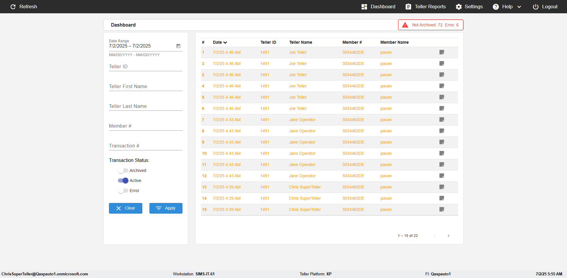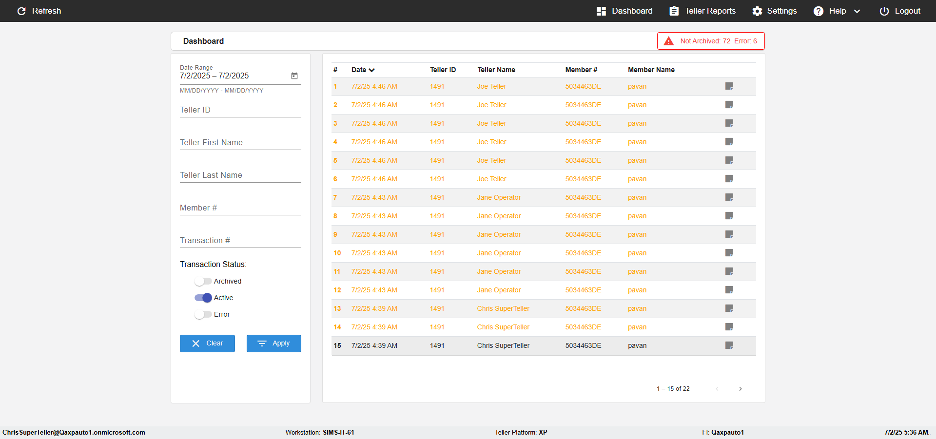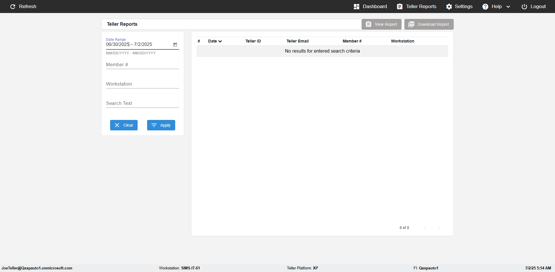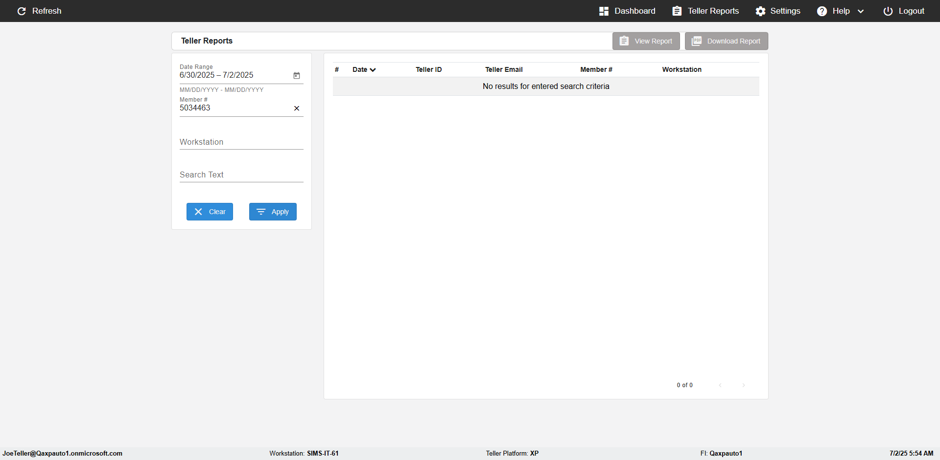 | {UserPwd=iMM2022!, Description=verify Search Elements In Report Page Teller ID, Teller ID=, errorMessage=, Teller Email=, View=, Date=2, Clear=, Workstation=, errorint=, TestID=verifySearchInReports, Transaction=, Header=, Username=JoeTeller@Qaxpauto1.onmicrosoft.com, Export=, Member #=5034463, Search Text=, Level=} |