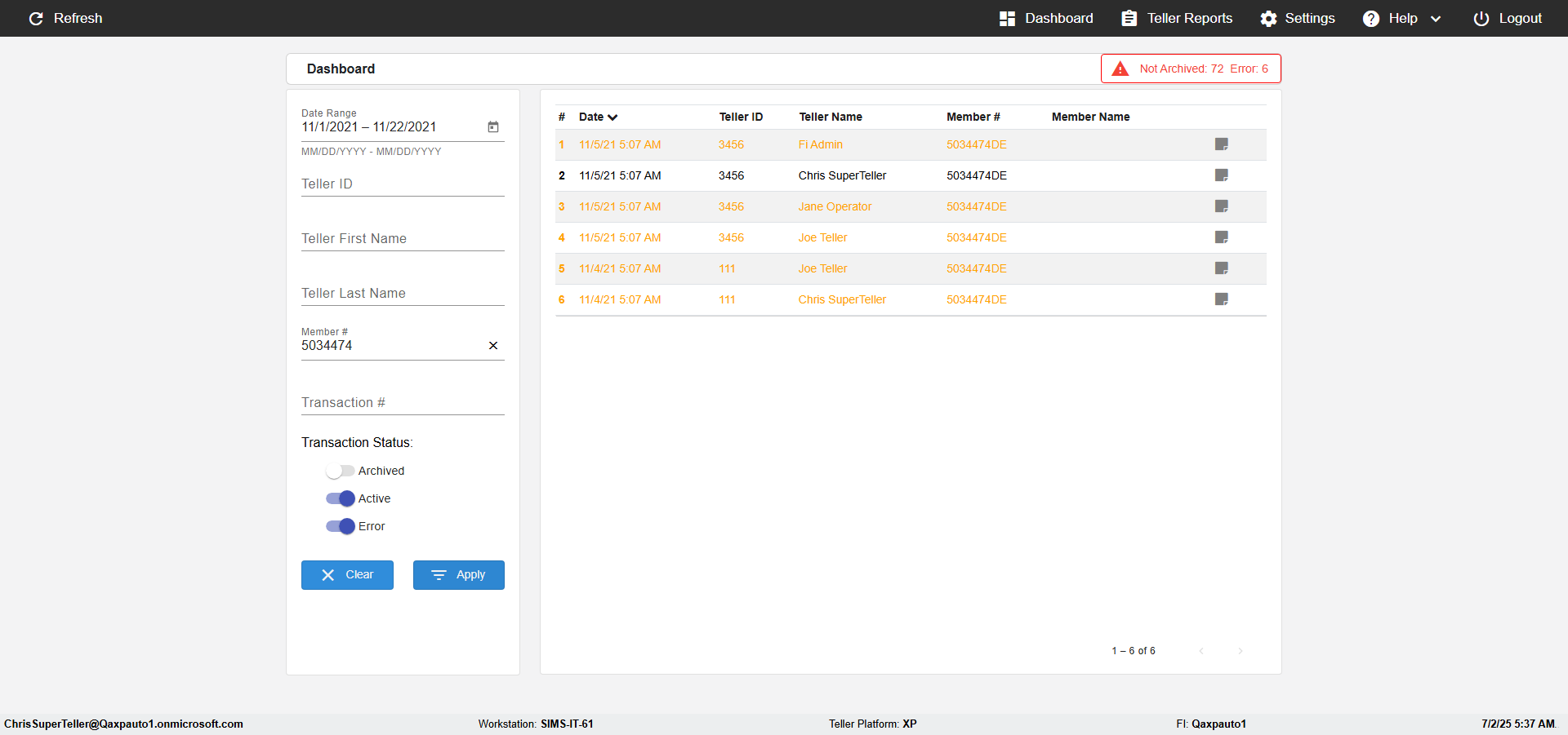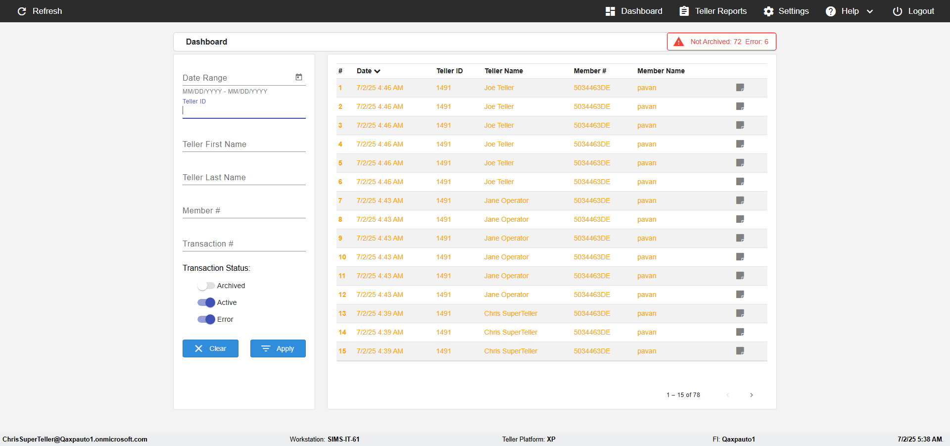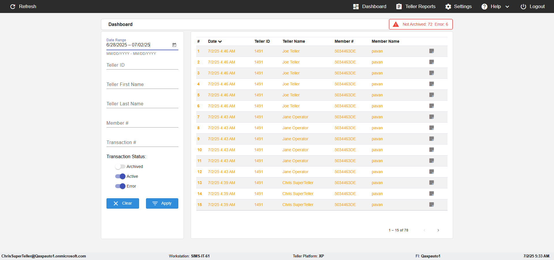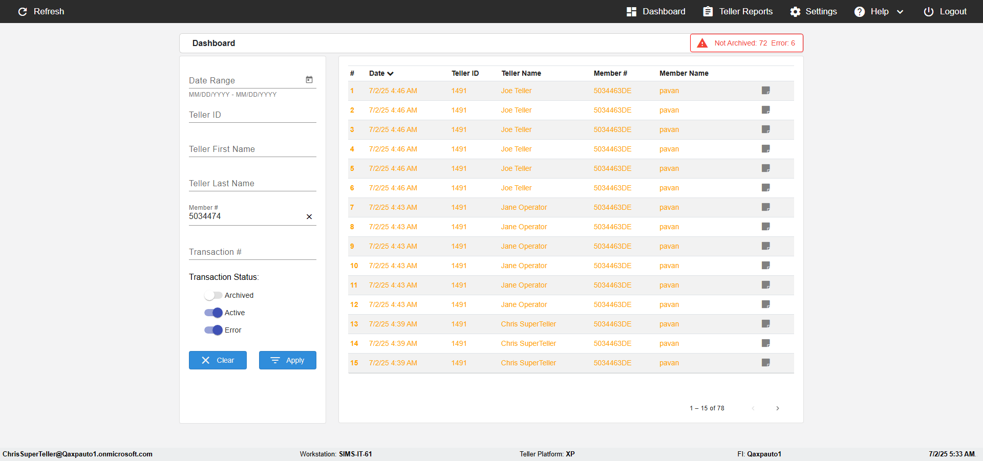| {UserPwd=iMM2022!, Description=verify Search Elements In Report Page Teller ID, Teller ID=, errorMessage=, Teller Email=, View=, Date=2, Clear=, Workstation=, errorint=, TestID=verifySearchInReports, Transaction=, Header=, Username=JoeTeller@Qaxpauto1.onmicrosoft.com, Export=, Member #=5034463, Search Text=, Level=} |