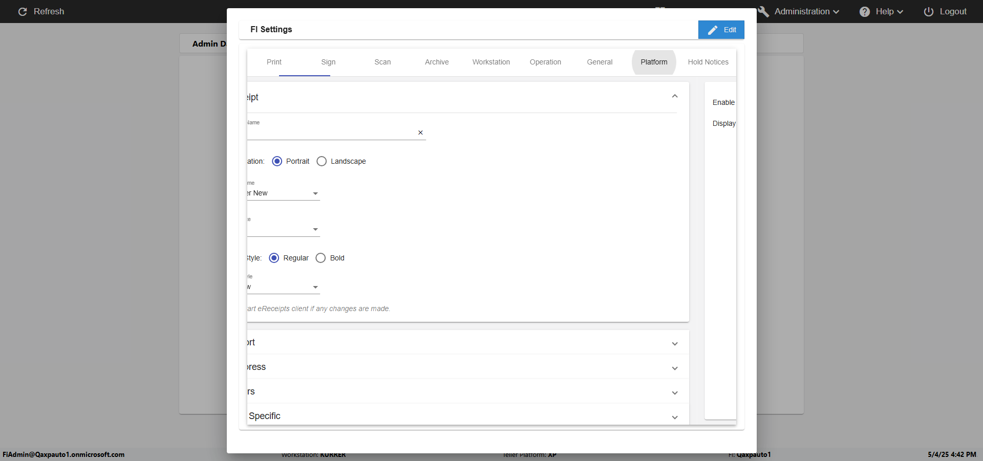 Actual(Passed): Sucessfully clicked on Settings button in Teller portal[ScreenShot]