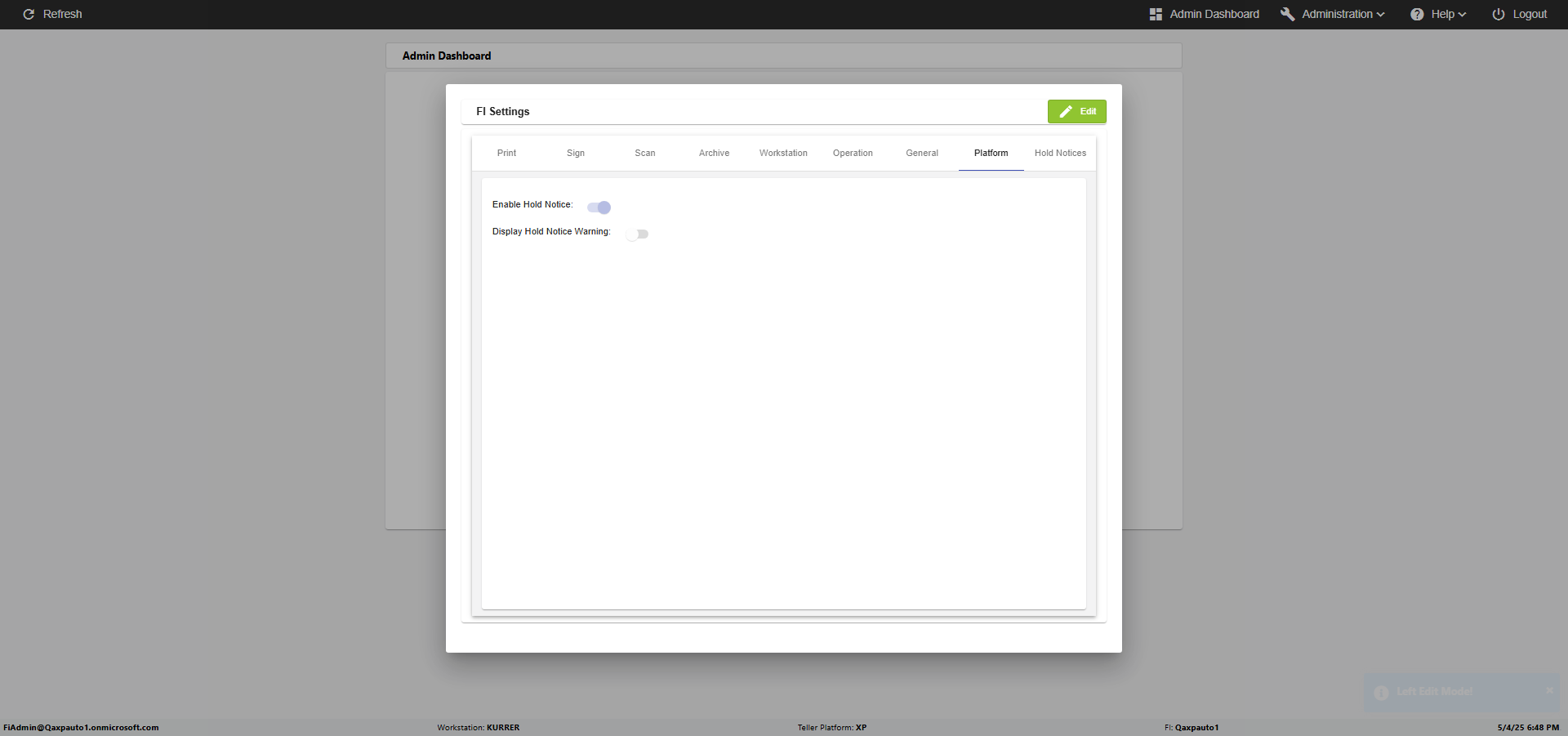 Expected: click on Enable Hold Notice