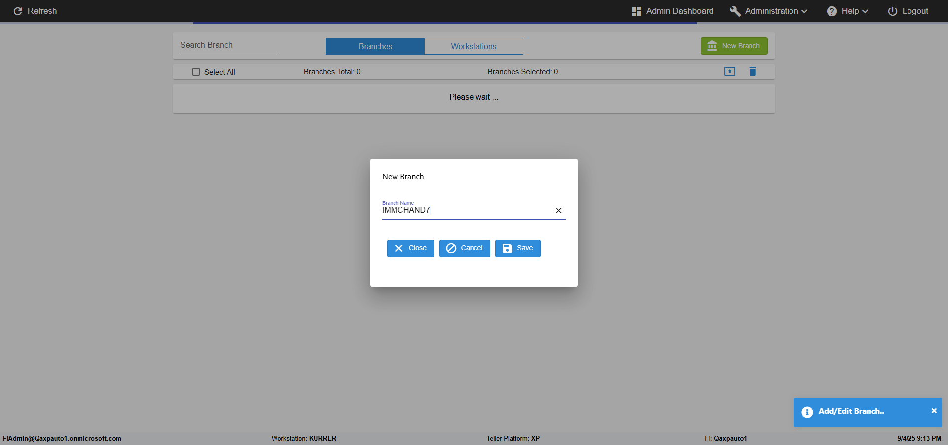 Clicked on Add New Branch icon |