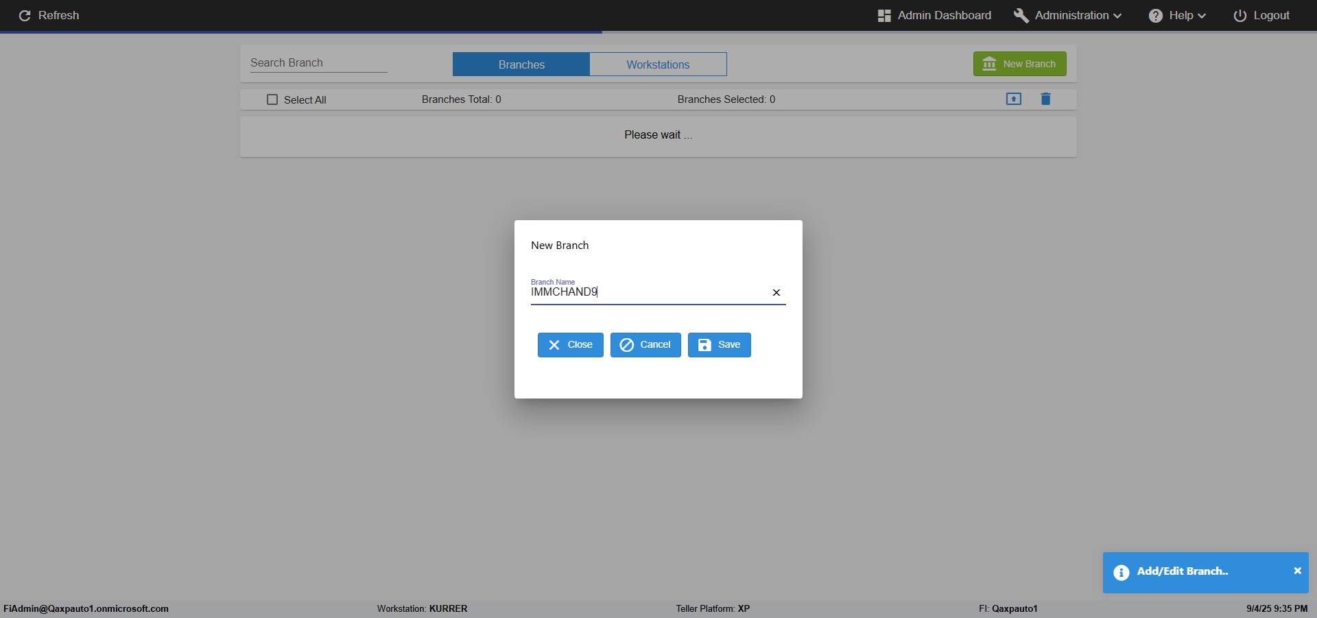 | 09:35:05 PM | Successfully navigated to the 'Branches' page [ScreenShot] | |