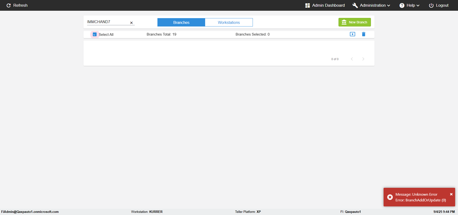 | 09:44:12 PM | Successfully navigated to the 'Branches' page [ScreenShot] | |