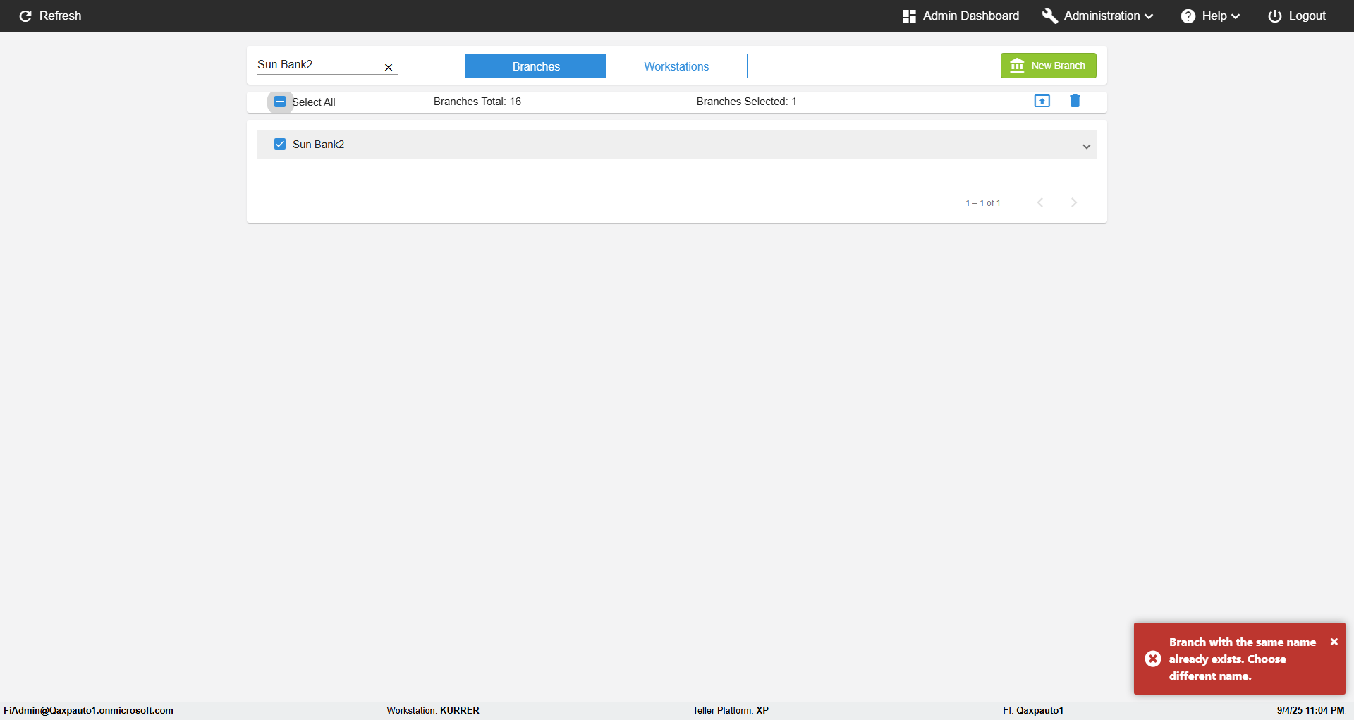 | 11:04:12 PM | Expected: select the list matching pattern in 'Branches' page Actual(Passed): Successfully selected list in 'Branches' page [ScreenShot] |
