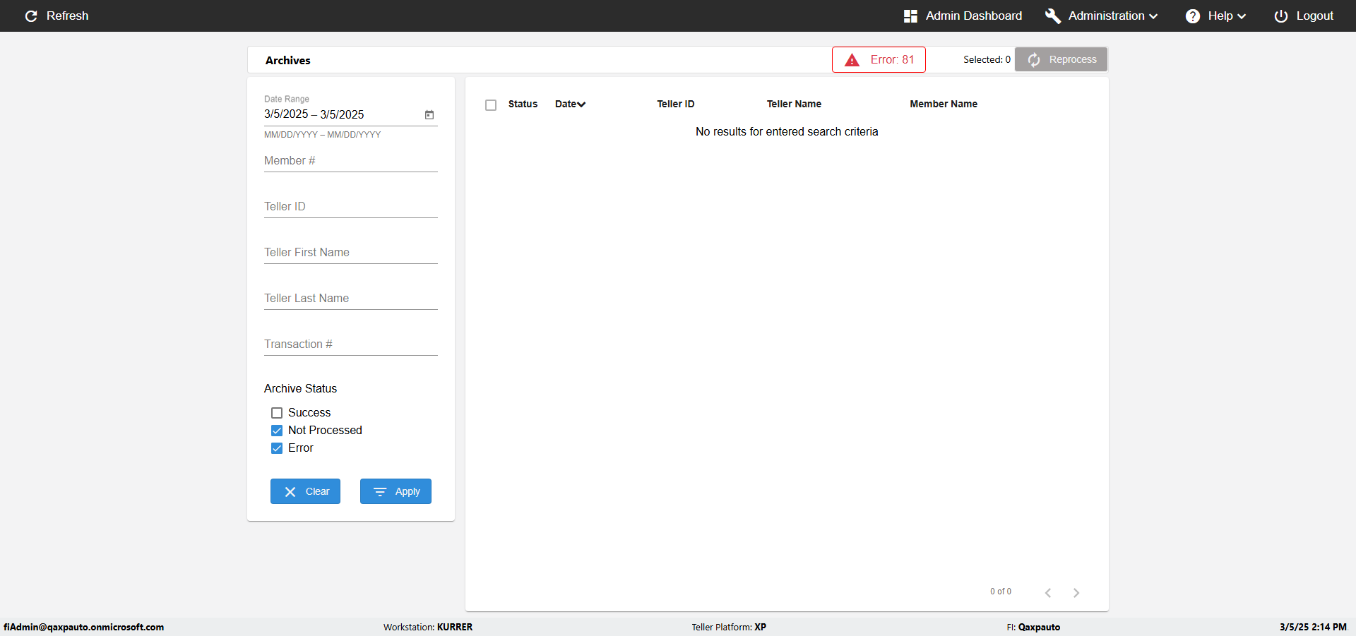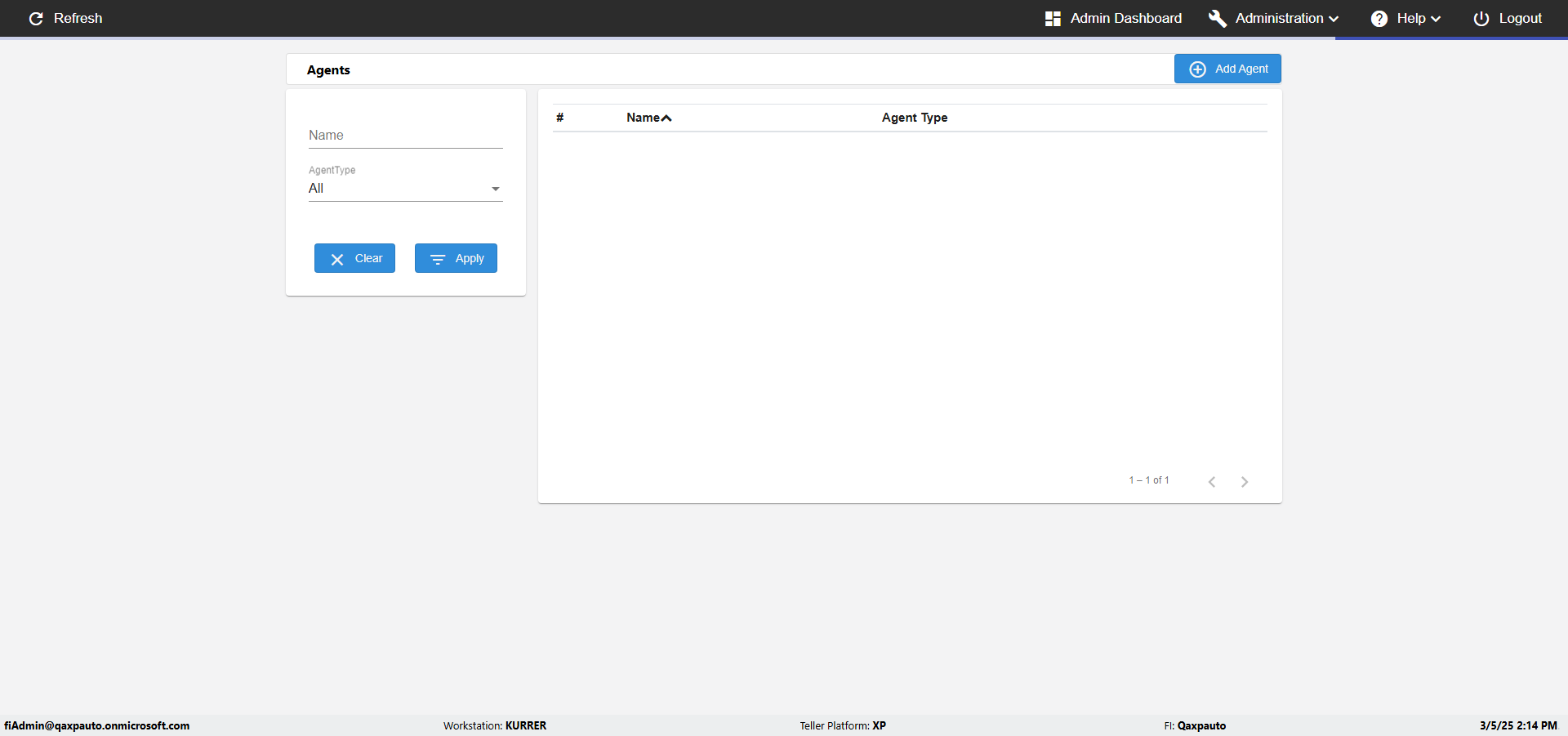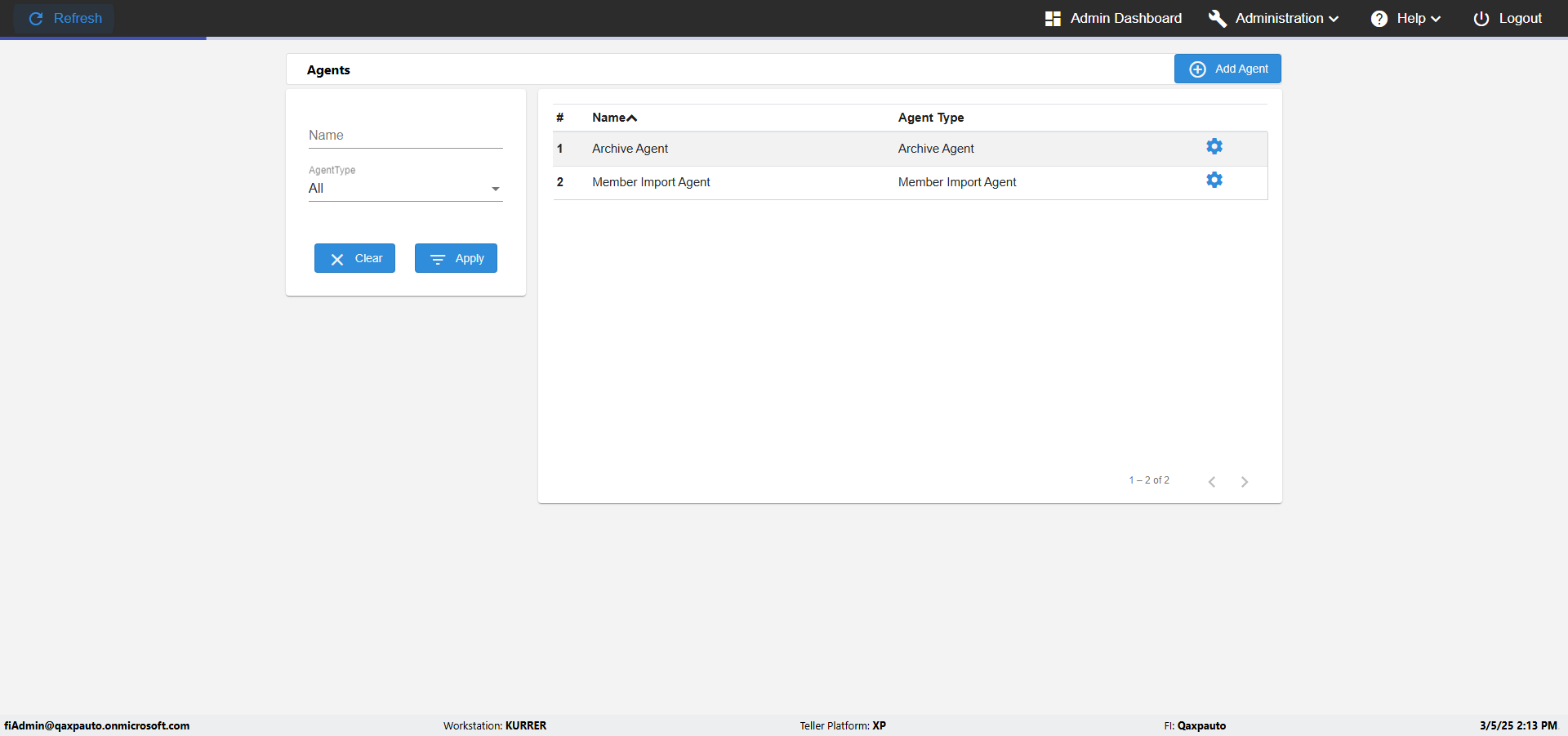 Control Panel, FI Management, Agents, Roles, Imaging Indexes, Member Import, Logging, Archives, About, Logout Actual(Passed): Successfully verified the Verfiy Administration menu has the following options- Control Panel, FI Management, Agents, Roles, Imaging Indexes, Member Import, Logging, Archives, About, Logout [ScreenShot] --- 05 Mar 14:12:52 290 - Element is displayed:: [[RemoteWebDriver: chrome on Windows 10 (58374cfb6e980117c018057547ee0e4b)] -> xpath: //mat-toolbar/div/button[2]/span] --- 05 Mar 14:12:54 457 - Element is displayed:: [[RemoteWebDriver: chrome on Windows 10 (58374cfb6e980117c018057547ee0e4b)] -> xpath: //mat-toolbar/div/button[2]/span] --- 05 Mar 14:12:56 692 - Element is displayed:: [[RemoteWebDriver: chrome on Windows 10 (58374cfb6e980117c018057547ee0e4b)] -> id: immMenuLogging] Successfully navigated to the 'Logging' page [ScreenShot] --- 05 Mar 14:12:57 787 - Element is displayed:: [[RemoteWebDriver: chrome on Windows 10 (58374cfb6e980117c018057547ee0e4b)] -> id: immRefresh] Successfully navigated to the 'Logging' page after refresh [ScreenShot] --- 05 Mar 14:12:58 122 - Element is displayed:: [[RemoteWebDriver: chrome on Windows 10 (58374cfb6e980117c018057547ee0e4b)] -> xpath: //mat-toolbar/div/button[2]/span] --- 05 Mar 14:13:00 264 - Element is displayed:: [[RemoteWebDriver: chrome on Windows 10 (58374cfb6e980117c018057547ee0e4b)] -> xpath: //mat-toolbar/div/button[2]/span] --- 05 Mar 14:13:01 049 - Element is displayed:: [[RemoteWebDriver: chrome on Windows 10 (58374cfb6e980117c018057547ee0e4b)] -> id: immMenuAgents] Successfully navigated to the 'Agent' page [ScreenShot] --- 05 Mar 14:13:03 682 - Element is displayed:: [[RemoteWebDriver: chrome on Windows 10 (58374cfb6e980117c018057547ee0e4b)] -> id: immRefresh] Successfully navigated to the 'Agent' page after refresh [ScreenShot] --- 05 Mar 14:13:04 064 - Element is displayed:: [[RemoteWebDriver: chrome on Windows 10 (58374cfb6e980117c018057547ee0e4b)] -> xpath: //mat-toolbar/div/button[2]/span] --- 05 Mar 14:13:06 224 - Element is displayed:: [[RemoteWebDriver: chrome on Windows 10 (58374cfb6e980117c018057547ee0e4b)] -> xpath: //mat-toolbar/div/button[2]/span] --- 05 Mar 14:13:08 494 - Element is displayed:: [[RemoteWebDriver: chrome on Windows 10 (58374cfb6e980117c018057547ee0e4b)] -> id: immMenuArchive] Successfully navigated to the 'Archives' page [ScreenShot] --- 05 Mar 14:13:11 137 - Element is displayed:: [[RemoteWebDriver: chrome on Windows 10 (58374cfb6e980117c018057547ee0e4b)] -> id: immRefresh] Successfully navigated to the 'Archives' page after refresh [ScreenShot] --- 05 Mar 14:13:11 552 - Element is displayed:: [[RemoteWebDriver: chrome on Windows 10 (58374cfb6e980117c018057547ee0e4b)] -> xpath: //mat-toolbar/div/button[2]/span] --- 05 Mar 14:13:13 709 - Element is displayed:: [[RemoteWebDriver: chrome on Windows 10 (58374cfb6e980117c018057547ee0e4b)] -> xpath: //mat-toolbar/div/button[2]/span] --- 05 Mar 14:13:13 996 - Element is displayed:: [[RemoteWebDriver: chrome on Windows 10 (58374cfb6e980117c018057547ee0e4b)] -> id: immMenuRoles] Successfully navigated to the 'Roles' page [ScreenShot] --- 05 Mar 14:13:16 635 - Element is displayed:: [[RemoteWebDriver: chrome on Windows 10 (58374cfb6e980117c018057547ee0e4b)] -> id: immRefresh] Successfully navigated to the 'Roles' page after refresh [ScreenShot] --- 05 Mar 14:13:16 976 - Element is displayed:: [[RemoteWebDriver: chrome on Windows 10 (58374cfb6e980117c018057547ee0e4b)] -> xpath: //mat-toolbar/div/button[2]/span] --- 05 Mar 14:13:19 109 - Element is displayed:: [[RemoteWebDriver: chrome on Windows 10 (58374cfb6e980117c018057547ee0e4b)] -> xpath: //mat-toolbar/div/button[2]/span] --- 05 Mar 14:13:21 657 - Element is displayed:: [[RemoteWebDriver: chrome on Windows 10 (58374cfb6e980117c018057547ee0e4b)] -> id: immMenuMemberImportOnDemand] Successfully navigated to the 'Member Import On Demand' page [ScreenShot] --- 05 Mar 14:13:24 297 - Element is displayed:: [[RemoteWebDriver: chrome on Windows 10 (58374cfb6e980117c018057547ee0e4b)] -> id: immRefresh] Successfully navigated to the 'Member Import On Demand' page after refresh [ScreenShot] --- 05 Mar 14:13:24 641 - Element is displayed:: [[RemoteWebDriver: chrome on Windows 10 (58374cfb6e980117c018057547ee0e4b)] -> xpath: //mat-toolbar/div/button[2]/span] --- 05 Mar 14:13:26 778 - Element is displayed:: [[RemoteWebDriver: chrome on Windows 10 (58374cfb6e980117c018057547ee0e4b)] -> xpath: //mat-toolbar/div/button[2]/span] --- 05 Mar 14:13:29 420 - Element is displayed:: [[RemoteWebDriver: chrome on Windows 10 (58374cfb6e980117c018057547ee0e4b)] -> id: immMenuMemberImportSchedule] Successfully navigated to the 'Member Import Schedule' page [ScreenShot] --- 05 Mar 14:13:32 149 - Element is displayed:: [[RemoteWebDriver: chrome on Windows 10 (58374cfb6e980117c018057547ee0e4b)] -> id: immRefresh] Successfully navigated to the 'Member Import Schedule' page after refresh [ScreenShot] --- 05 Mar 14:13:32 519 - Element is displayed:: [[RemoteWebDriver: chrome on Windows 10 (58374cfb6e980117c018057547ee0e4b)] -> xpath: //mat-toolbar/div/button[2]/span] --- 05 Mar 14:13:34 657 - Element is displayed:: [[RemoteWebDriver: chrome on Windows 10 (58374cfb6e980117c018057547ee0e4b)] -> xpath: //mat-toolbar/div/button[2]/span] --- 05 Mar 14:13:34 963 - Element is displayed:: [[RemoteWebDriver: chrome on Windows 10 (58374cfb6e980117c018057547ee0e4b)] -> id: immMenuImagingIndexes] Successfully navigated to the 'Imaging Indexes' page [ScreenShot] --- 05 Mar 14:13:37 668 - Element is displayed:: [[RemoteWebDriver: chrome on Windows 10 (58374cfb6e980117c018057547ee0e4b)] -> id: immRefresh] Successfully navigated to the 'Imaging Indexes' page after refresh [ScreenShot] --- 05 Mar 14:13:38 058 - Element is displayed:: [[RemoteWebDriver: chrome on Windows 10 (58374cfb6e980117c018057547ee0e4b)] -> xpath: //mat-toolbar/div/button[2]/span] --- 05 Mar 14:13:40 316 - Element is displayed:: [[RemoteWebDriver: chrome on Wi