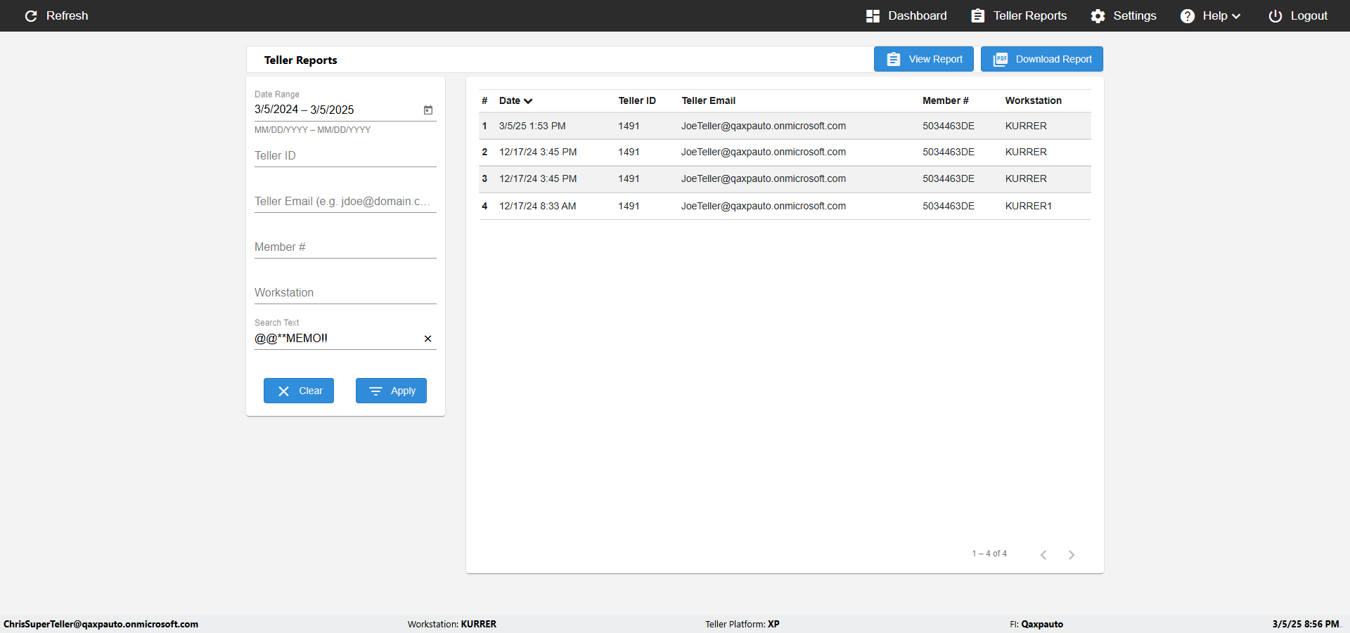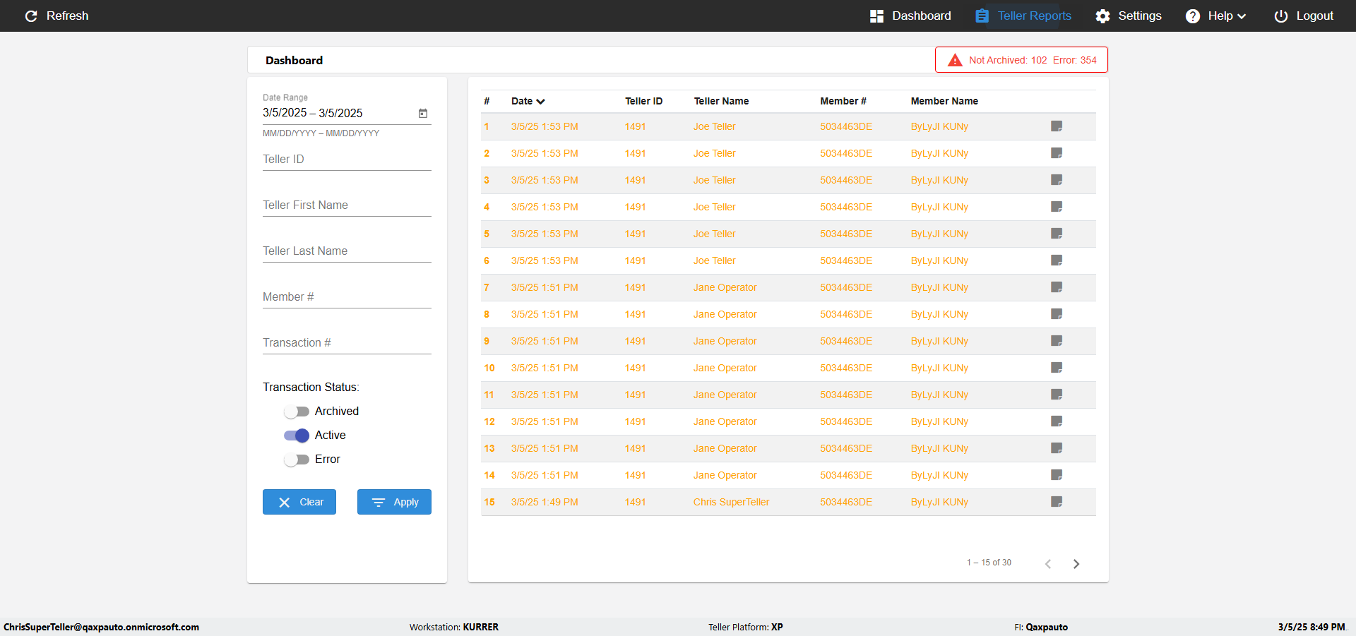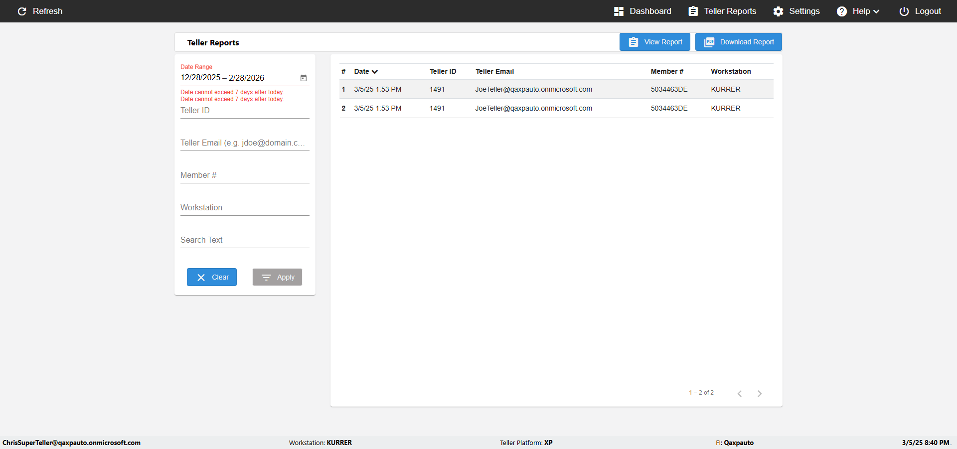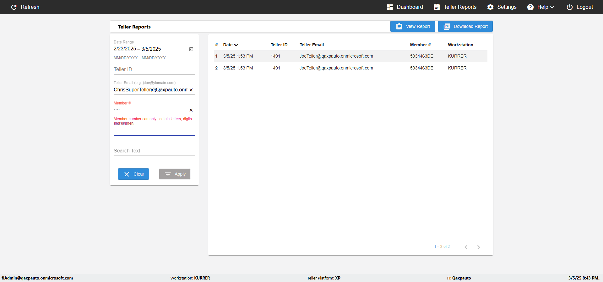 | 08:43:19 PM | Entered 'Teller Email' : ChrisSuperTeller@Qaxpauto.onmicrosoft.com [ScreenShot] | |