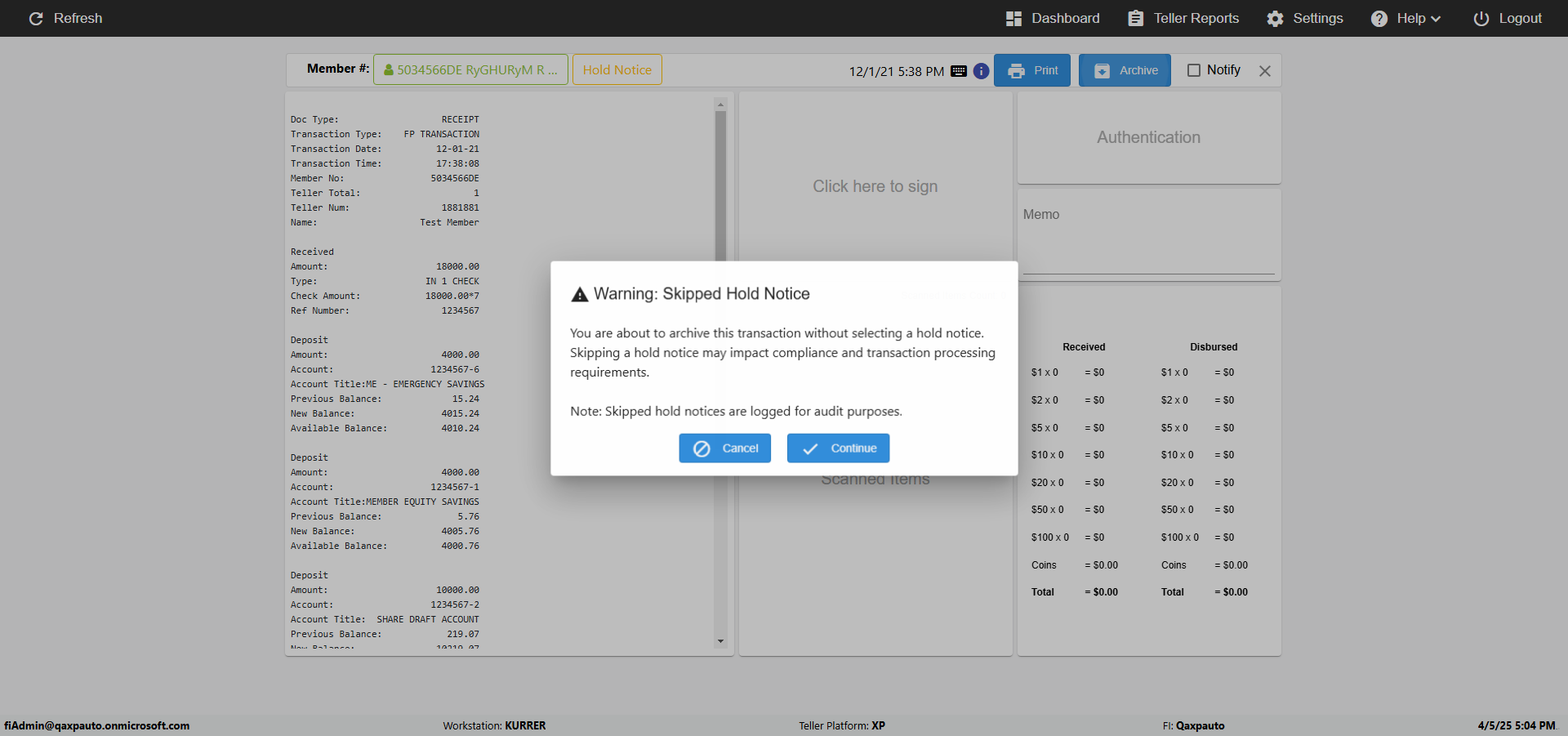 Actual(Passed): Successfully Checked the Hold Notice after opening Receipt Page[ScreenShot] Expected: Click on Hold notice Cancel button