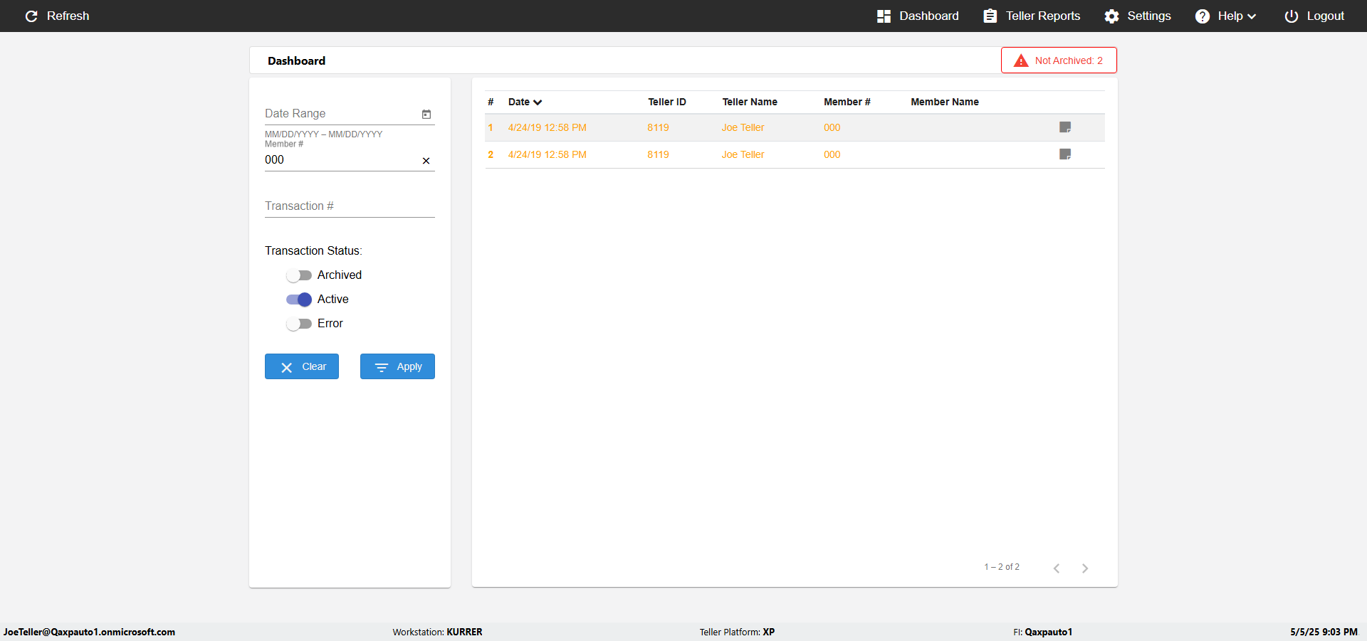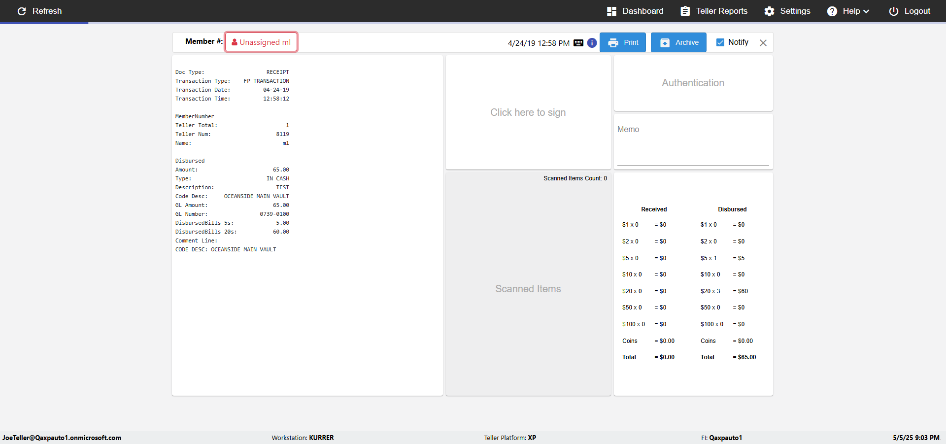 | 09:02:07 PM | Successfully navigated to 'eReceipts Teller' Page | |