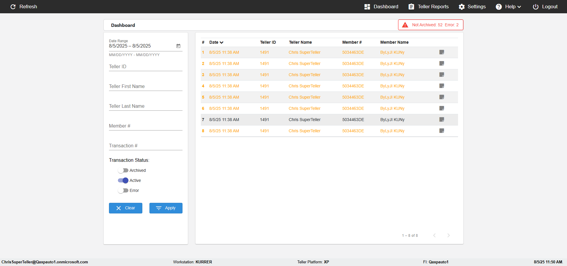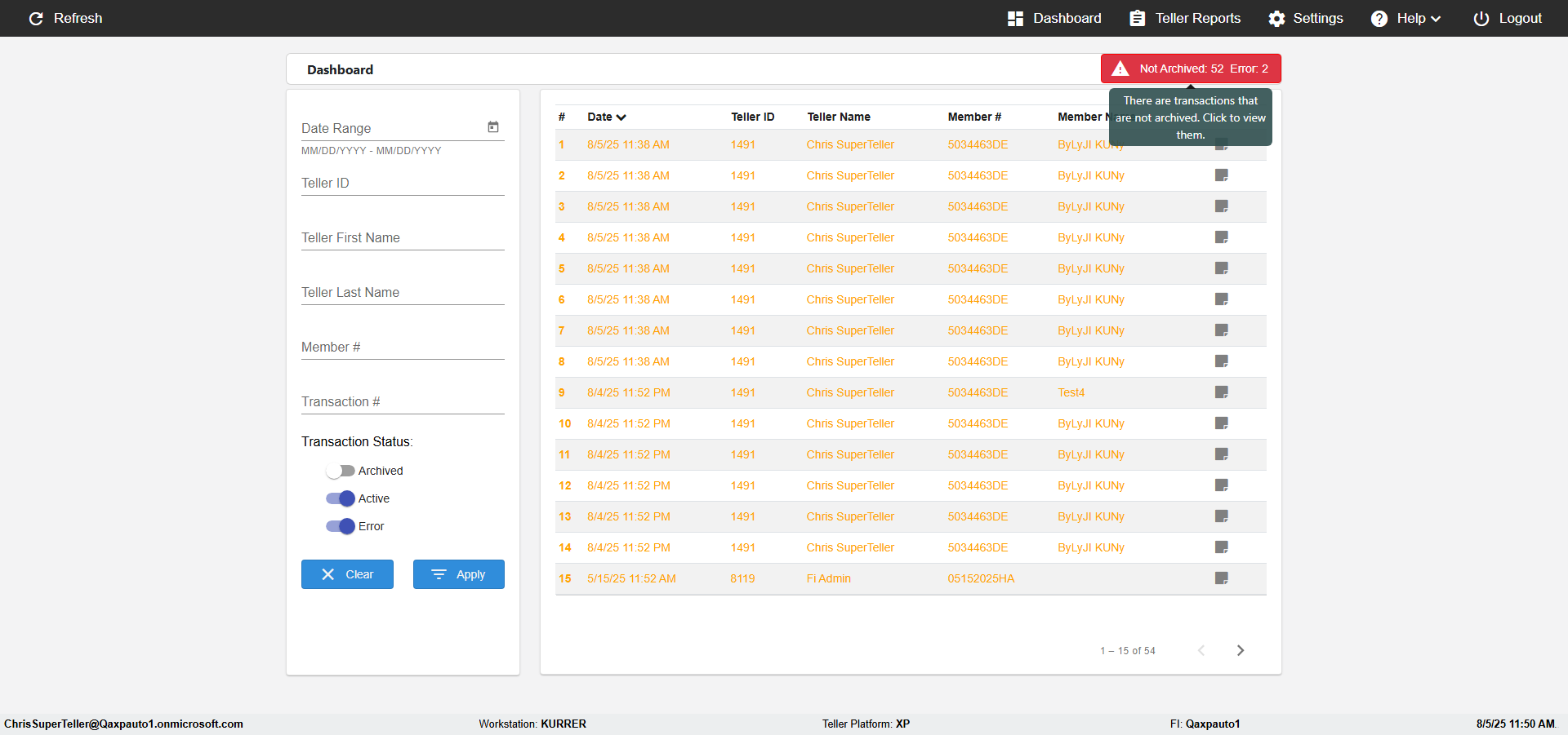 (verify MemberID And Archive Information for Normal teller In Receipt Page)