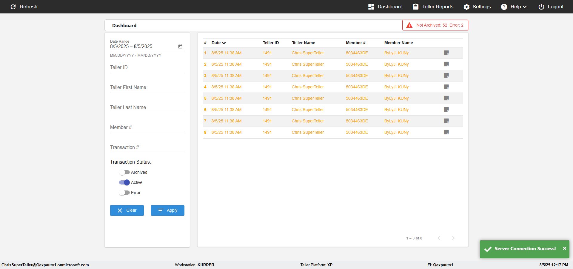 --- 05 Aug 12:17:07 235 - Page URL:: https://er-tellerportal-demo.azurewebsites.net/dashboard